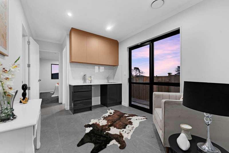 New 6 Beds with 2 legal kitchens & granny flat. Wake up to the gentle whisper of the sea and embrace a lifestyle that’s vibrant, inspiring, and truly your own. Welcome to your brand new, coastal sanctuary—crafted for those who desire more than just a home. Here, the stunning meeting of land and water becomes your daily backdrop, reminding you that the best moments in life are meant to be savored. This is your invitation to something greater—a residence that redefines modern Kiwi living with style, space, and a touch of the extraordinary. Every detail is designed to make you feel special, valued, and right at home. Feel the Difference: - 6 spacious bedrooms—room for everyone, and then some. - 4 ensuites, each with its own wardrobe—privacy and comfort for every family member. - Multiple lounges and living spaces—perfect for entertaining, relaxing, or escaping with a good book. - Dedicated sitting area with a wet bar—ideal for unwinding or power snooze . - Versatile 2-bedroom granny flat with its own private entry and kitchen—perfect for extended family, guests, flat mates or extra income. A Kitchen That’s the Heartbeat of the Home: - Modern design, branded chattels, sparkling spotlights, an island benchtop, and - A captivating art-effect fireplace on a feature wall with modern cabinetry - The open plan flows effortlessly to an expansive outdoor deck—your stage for unforgettable gatherings and summer BBQs. Smart, Spacious, and Sophisticated - Double garage plus ample off-street parking—room for all your toys. - Five luxurious bathrooms and a separate guest toilet—never queue for the shower again! - Effortless indoor-outdoor living, with the sea breeze just moments away. - Comes with 10 years builders guarantee and 1 year maintenance. Chattels includes; Digital Lock on main door Bosch Cooktop/oven/dishwasher All lights/fitting including chandeliers Central Heating system, Central Vacuum system CCTV, intercom, Alarm system, Music system in Family area Underfloor heating in Main bathrooms, LED mirrors, extractor fans, Commercial grade carpet in garage area Location - 2 mins drive or 10 mins walk to areas newest primary school - 7 mins drive to southern motorway - 10 mins drive to renowned ACG private school Karaka PARK GREEN New Primary school (opened Term 3 2022) Newly opened Waterfront Cafe Neighbourhood centre (partially to opened Q4 2024) Pedestrian and cycle networks Esplanade reserves and stream and wetland areas For more details about the area copy paste this link https://parkgreen.co.nz/about/ Step into a home that’s ready to celebrate life’s big and small moments with you. From the grand main lounge that leaves a lasting impression, to every carefully crafted corner—this is where you belong. Make Everyday Extraordinary. Your dream home by the water awaits—where style, space, and special memories come together. Let’s make your next chapter unforgettable. Contact us today for your private viewing!