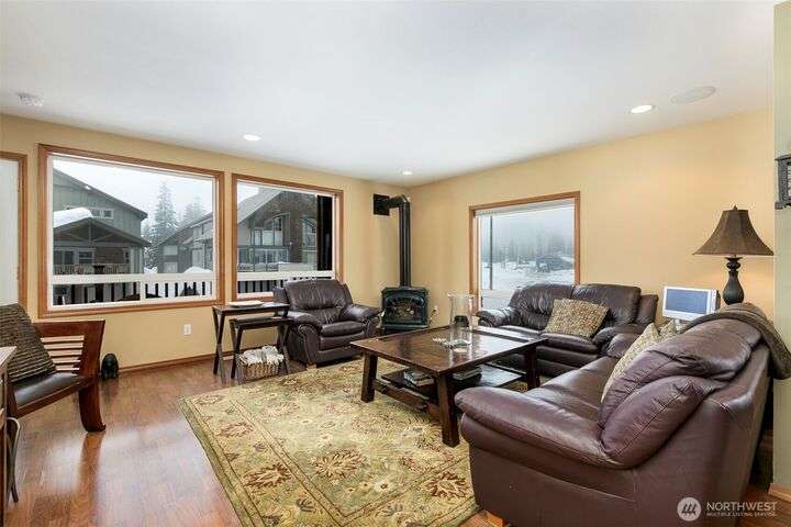 This 3 BR, 2.5 townhome is perfect for year-round living and weekend escapes. Featuring mountain views, a large covered deck, great room, open kitchen, recreation, game and bonus rooms. Walk to Snoqualmie Ski Resort and restaurant. SONOS security and entertainment system. Three freestanding propane heaters. Wired generator provides automatic power during outages. This is a community of 68 homes with private roads, walking and biking trails for year-round enjoyment. Low HOA dues include snow removal. Easy access to I-90.