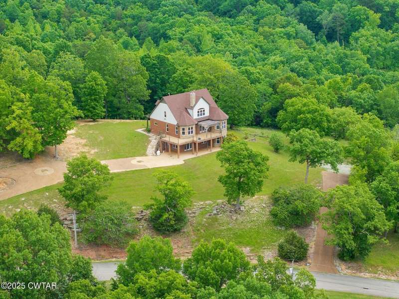 INVESTOR OPPORTUNITY & MOTIVATED SELLER! Majestic Views of the TN River on 2.87 private acres, this property features over 4000 square feet ready for new owners to finish to their taste. 3 levels of living space-all featuring the water views. Electric, septic & water are connected. HVAC units are installed and operational. Exterior is finished & interior rooms are framed. Plenty of places to enjoy the outdoors in the awesome deck, patios, front porch & gazebo. Located in the desirable gated River's Edge resort area, this beautiful build is located on 2 resort lots, & features a custom concrete drive & parking area. The community boat ramp & courtesy dock add to the convenience of TN River living! Riverstone Marina is nearby as is the Clifton Marina.