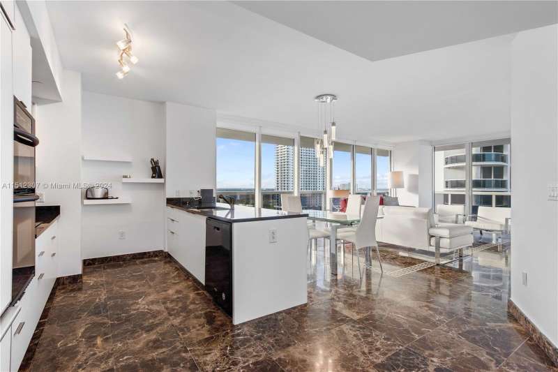 Enjoy the stunning views of the ocean and the intracoastal from this gorgeous 2/2 NW corner unit. This luxurious residence has marble floors in every room and spacious beds in both bedrooms. You can also access a variety of amenities, such as a two-story exercise room, a spa, a sauna, a steam room, 3 pools, a bar with pool service, and 24-hour concierge and valet parking.