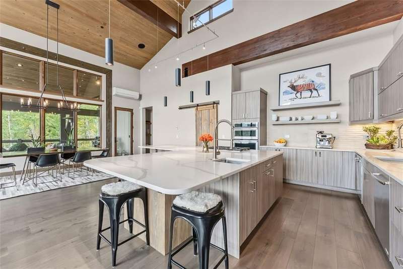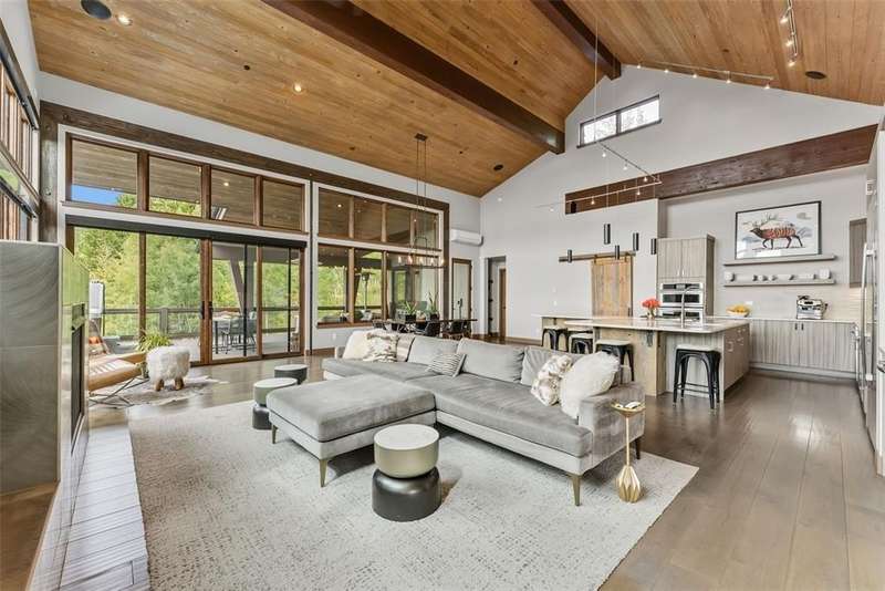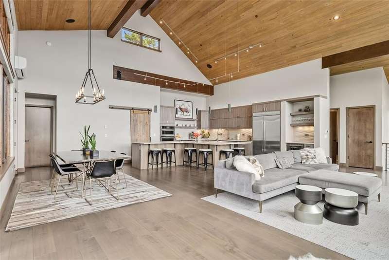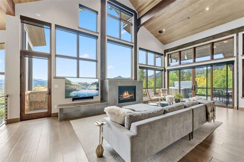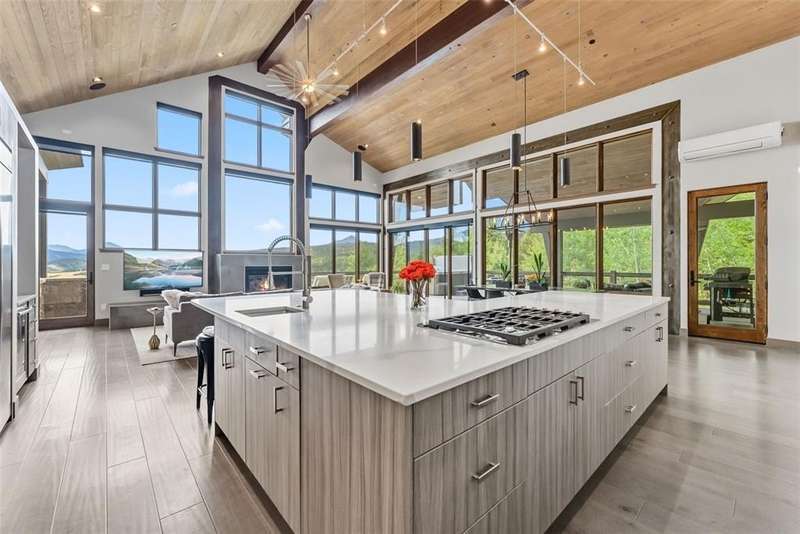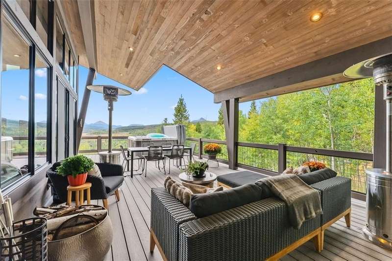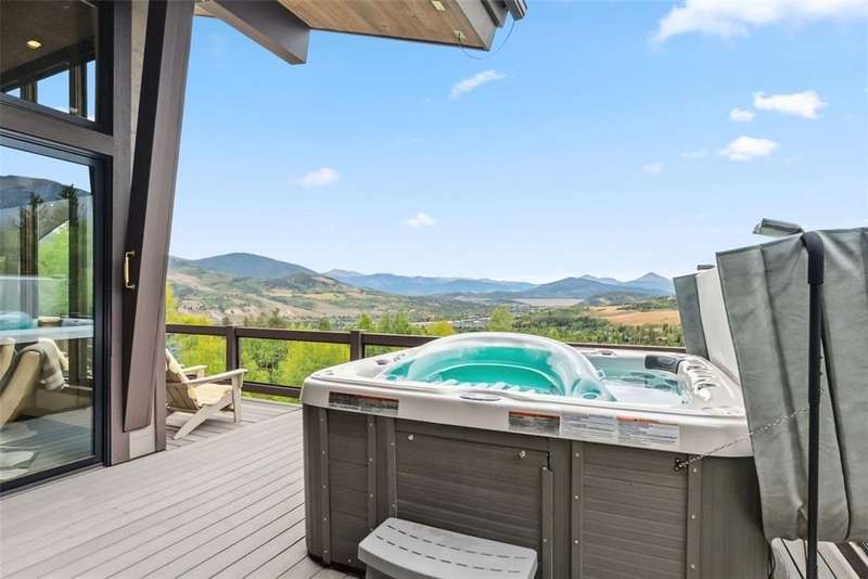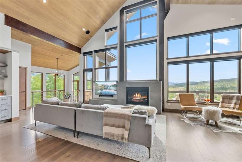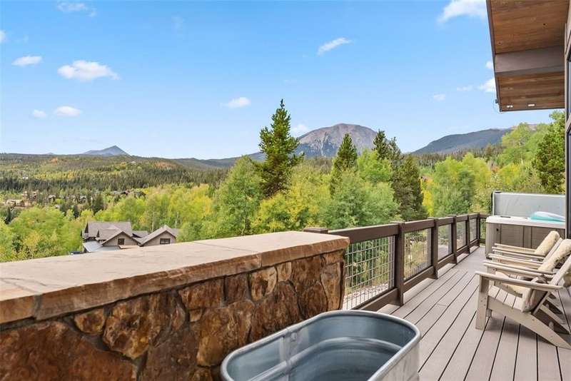 Perched on a hilltop in Silverthorne, this award-winning, custom-built mountain modern home offers sweeping views of the Silverthorne valley, surrounding peaks and Keystone’s ski slopes. Floor-to-ceiling windows frame the alpine scenery, while over 600 square feet of heated, covered decks provide year-round outdoor living. Inside, rich hardwood floors, wood ceilings, stone accents, and custom tilework create a warm, elegant retreat. This home was a standout in the 2018 Summit County Parade of Homes, winning all eligible awards in its category. Built by McCrerey Fine Homes and designed by BHH Partners, it features high-end finishes, an open-concept layout, Lutron automated blinds, Sonos whole-home audio and a private hot tub. This beautiful mountain retreat is just steps from the neighborhood’s extensive network of scenic hiking trails and overlooks the Raven Golf Course. A true statement of modern mountain living. *This exceptional residence was honored in the 2018 Summit County Parade of Homes, sweeping all eligible awards in the 4,000–5,000 square foot category. Built by McCrerey Fine Homes and designed by the acclaimed BHH Partners, every inch of this home reflects inspired craftsmanship and modern mountain elegance. *Premier Location & Views: Overlooking the Raven Golf Course with unobstructed vistas of the Continental Divide and Keystone slopes. Enjoy a soak in your private hot tub after a day exploring the neighborhood’s extensive trail network. *Elegant Interior Design: Thoughtfully designed for both relaxation and entertaining, the home features an open-concept layout, luxurious finishes, and expansive living spaces. Premium touches include Lutron automated blinds, a Sonos whole-home sound system, and high-efficiency, oversized windows that bring the outdoors in.