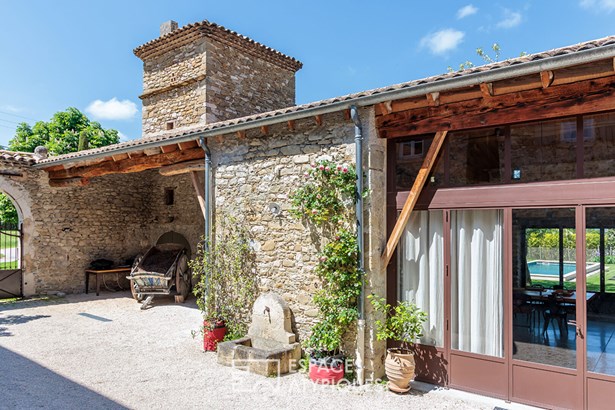Offering over 800 m2 of living space, it is set in 1.7 hectares of wooded parkland, with plantations of truffle oaks in production, an elegant swimming pool and several carefully renovated outbuildings, cellar and garage.