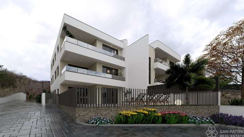 In a peaceful part of Vrbnik, one of the most unique and authentic towns on the island of Krk, a modern residential building is under construction. The project consists of two multi-family buildings with a total of six apartments, carefully designed to combine functionality, tranquility, and a modern way of living. The building is located on a gentle elevation above the old town of Vrbnik, surrounded by nature and offering panoramic views of the sea and the town.