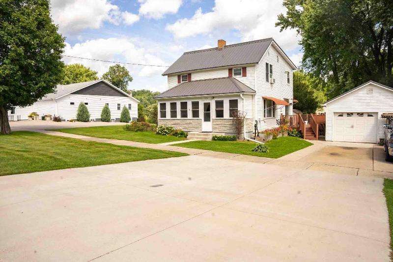 Tucked into the rolling hills of the Driftless Area, this charming 4 bedroom home with 1 1/2 car garage in Ontario is just minutes from Wildcat Mountain State Park and the winding Kickapoo River. Sip your morning coffee in the 3-season porch, and spend evenings on the new spacious backyard composite deck overlooking blooming perennials and your large backyard oasis. Thoughtfully updated with a newer roof, gutters with leaf guard, windows, siding, flooring, and a refreshed kitchen. A new widened concrete driveway and garden shed with a new roof complete the picture. This home is move-in ready and meticulously maintained. Nature and small-town charm await.