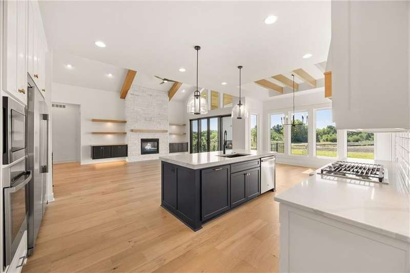 You'll love this sought after Gunnison REVERSE by JFE HOMES on walkout/up Lot #182 in a private cul-de-sac ready for a DEC 2025 MOVE IN! This ideal floor plan is a popular one with spacious main floor living at just over 2000 square feet on the main floor and a full finished walkout lower level for a total of 3596 finished square feet of living space. This beautiful home is an award winning plan and loaded with upgraded features at this price. The BRAND NEW transitional exterior takes on a new refreshing modern look with high front porch peaks, extra windows, vertical wood accent posts with real stone trim. Built on a walkout/up lot with 3' sunken private patio, this home also features a covered deck with double sliders that open from the great room providing plenty of light in the morning, a large great room with high ceilings and an oversized kitchen with island prep style walk in pantry. The perfect walkout lower level is finished and has a spacious living room with wet bar, TV accent wall, and two additional bedrooms or craft/fitness room. Still plenty of room for basement storage. * This home is under construction. The photos are of a previous model home * Century Farms boast a spectacular club house with a farmhouse twist ideal for neighborhood gatherings or private parties. It features a small prep area, fireplace, pub tables, reading loft and a fitness center. The large swimming pool includes a slide and is long enough for three competitive swim lanes. There are plenty of neighborhood activities with a fire-pit, two pickle-ball courts and a basketball hoop, farm themed animal kids play area, wildflower walkways and a community garden. Century Farms is conveniently located near the brand new Bluhawk shopping center, Heritage Park, the Johnson County Trail system and the Overland Park Arboretum. Come join the fun in Century Farms, a unique one of a kind upscale new home community in Overland Park. BLUE VALLEY SCHOOLS
