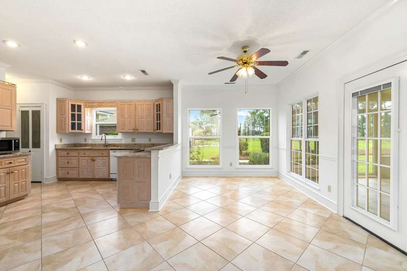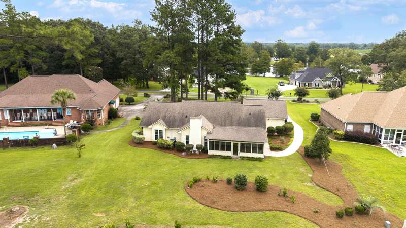Gorgeous custom-built home on the #12 fairway of The Players Course in the scenic gated, waterside community of Wyboo Plantation. Situated on a beautifully landscaped half-acre lot, this home has plenty of curb appeal w/ Lake Marion views just across the street. Features for this 3BR/2BA home include: abundant sunlight through the new windows installed in 2022; 2023 & 2021 HVAC units; an oversized kitchen w/ pull out shelving, newer SS range/refrigerator, granite countertops & dual pantries; eat-in kitchen space w/ additional sitting area; dedicated DR w/ tray ceiling; LR w/ cozy gas log FP; freshly painted walls throughout; large temp controlled sunroom w/ LVP flooring & lovely golf course views; spacious 2-car garage w/ storage above; newer rain gutters w/ leaf guards & so much more. Whether you're teeing off from your backyard, enjoying nearby lake activities, savoring the tranquility of this property, or appreciating the amenities offered by the community, you'll find everything you need to live your best life right here!