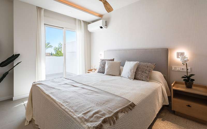 This stunning, fully reformed 2-bedroom apartment is located in the heart of Nueva Andalucía, just moments from all essential amenities. Designed with top-tier craftsmanship and meticulous attention to detail, this elegant home seamlessly blends contemporary style with comfort. Upon entering, you are welcomed into a bright and spacious open-plan living and dining area, leading out to a charming terrace that overlooks the beautifully maintained communal gardens. The fully fitted kitchen is equipped with high-end appliances, ensuring both functionality and style. The luxurious master suite features an en-suite bathroom, while the guest bedroom enjoys stunning views of La Concha Mountain and has access to a separate, beautifully finished bathroom. Hot and cold air conditioning ensures year-round comfort. Included with the property is a private underground parking space adding convenience and security. Set within the sought-after La Maestranza community, this gated Andalusian