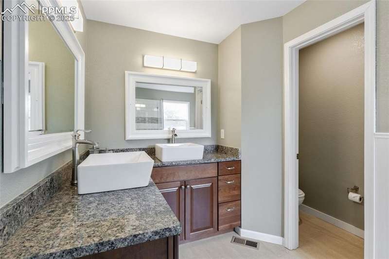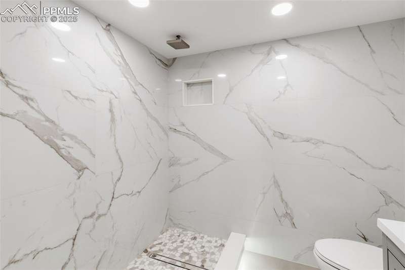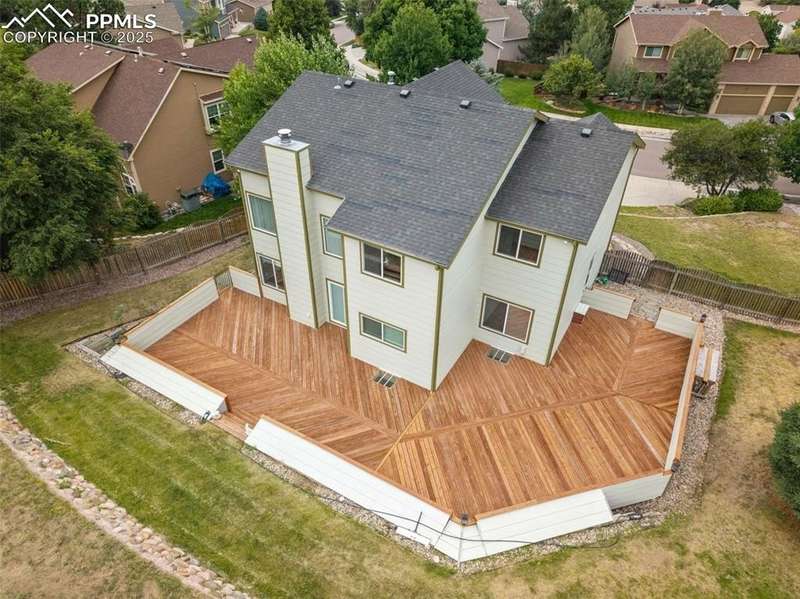 This recently remodeled home is located in the heart of Briargate, just five minutes from shopping areas, I-25 access, and the Air Force Academy * The kitchen is fully equipped with premium cherry wood cabinets, stainless steel appliances, granite countertops, a microwave-oven combo, a gas range, and a large island * The kitchen opens to the family room, which features a gas fireplace and 18-foot vaulted ceilings * The design incorporates multiple windows, allowing ample natural light to fill the space.* Adjacent to the kitchen, a deck offers an additional 1,400 square feet of outdoor living space, perfect for entertaining during the long summer nights * The main level is finished out with a formal living room, dining room, and a powder room * Upstairs, you will find four bedrooms, a newly remodeled laundry room (washer and dryer included), and refreshed lighting in the secondary bedrooms * The primary bedroom offers breathtaking views of Pikes Peak and includes a beautifully remodeled ensuite bathroom featuring dual vanities, a soaking tub, and an enlarged frameless glass shower * The basement includes a fifth bedroom, a newly added gorgeous 3/4 bathroom, and a large recreation room that can serve as either a game room or home theater * The house has been upgraded with six-panel doors and granite countertops throughout * The home sits on a .41-acre lot, complete with a fully fenced backyard and a separate fenced-in garden area * To top it off, there is an oversized 2-car garage with plenty of room for parking and more * Brand New Category 4 Roof * New HVAC system installed in 2022 * Enjoy Pikes Peak and mountain views from the front of the home * This residence is a must-see!!!