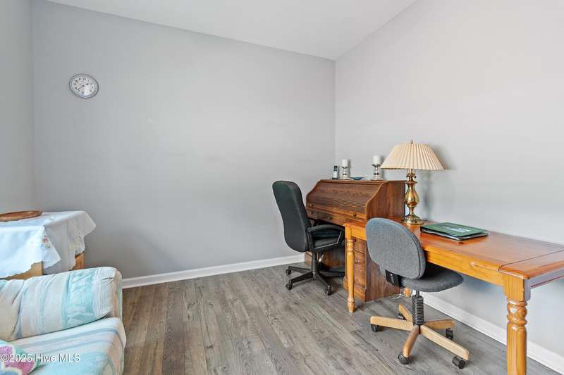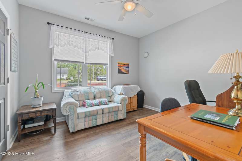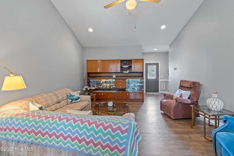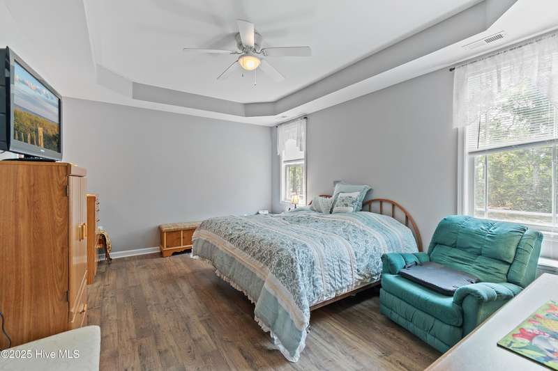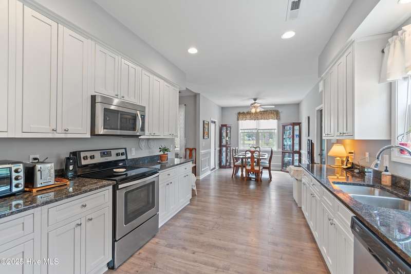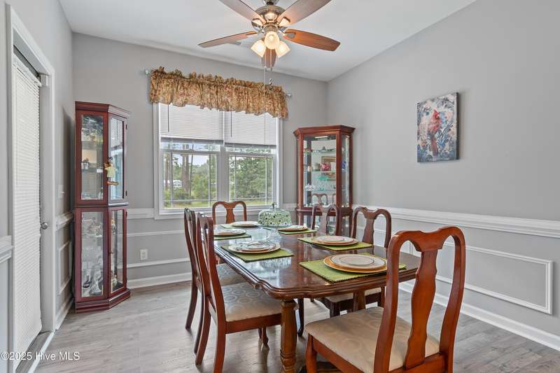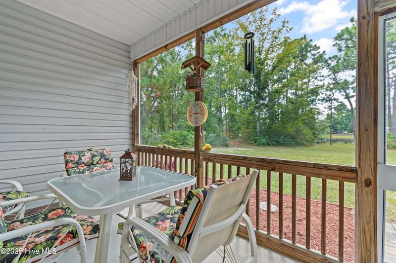 Serenity meets lakefront living! Located just minutes from the beach and nestled on an expanded lot, this home offers both privacy and easy access to local attractions. One-level, carefree living awaits in this three-bedroom, two-bath residence featuring a well-sized garage and a spacious screened back porch that overlooks the tranquil lake - providing a perfect spot for morning coffee or evening relaxation. As you tour the home, you will find an extensive kitchen with granite counters and 42-inch cabinetry. The dining room offers views of the lake and has classic wainscoting, while a generously sized living room with vaulted ceilings creates a welcoming space separating the kitchen from the bedrooms. The owner's suite features a main bedroom with a tray ceiling and a large bathroom equipped with a double vanity and a walk-in shower with beautiful tilework. This property stands out for its combination of peaceful waterfront setting, thoughtful design, and proximity to both community amenities and coastal attractions - a truly exceptional place to call home.