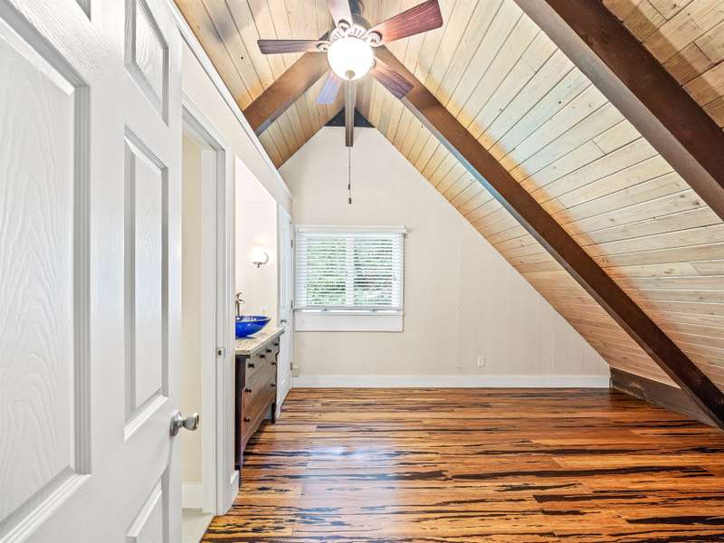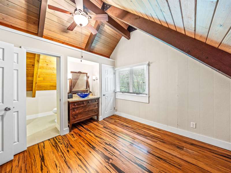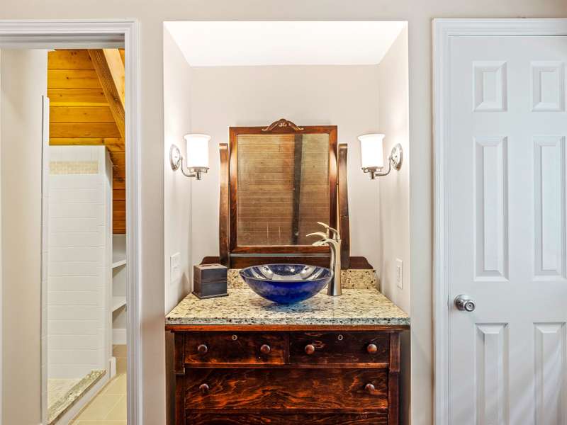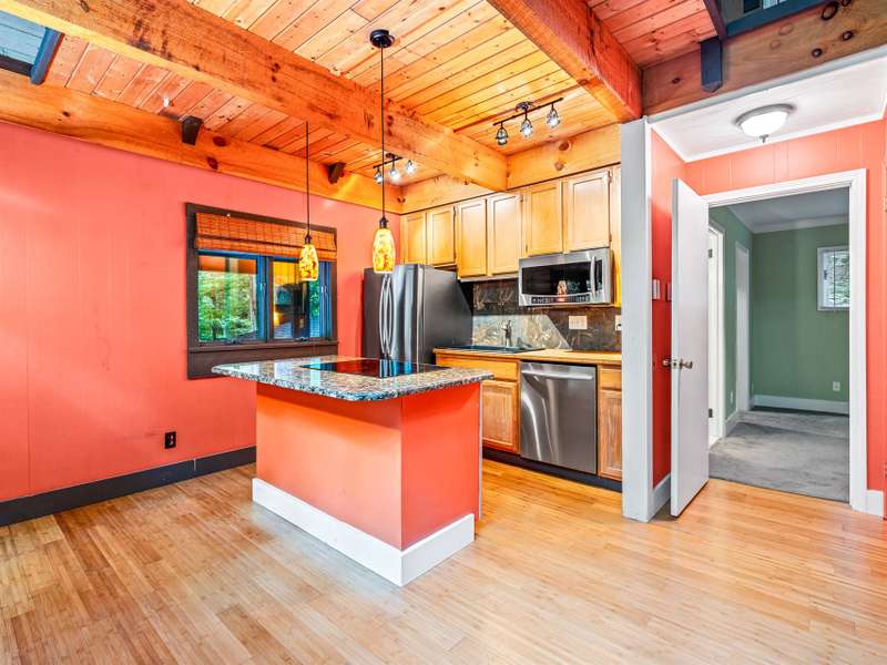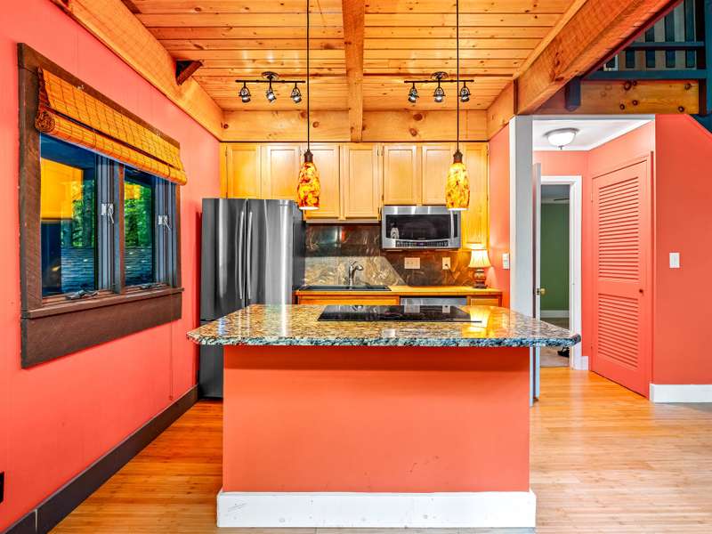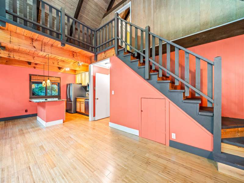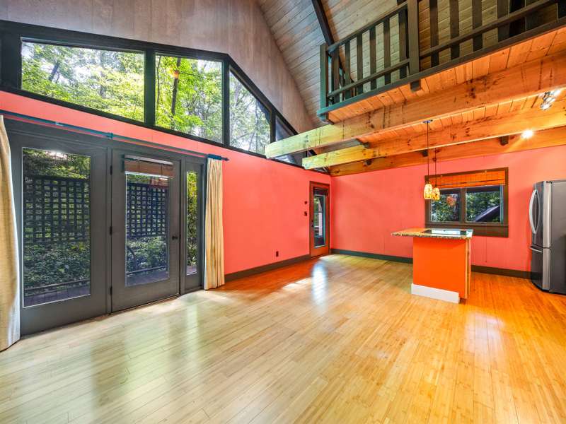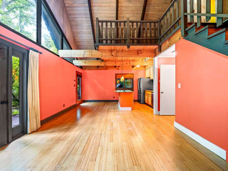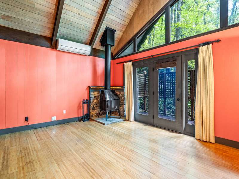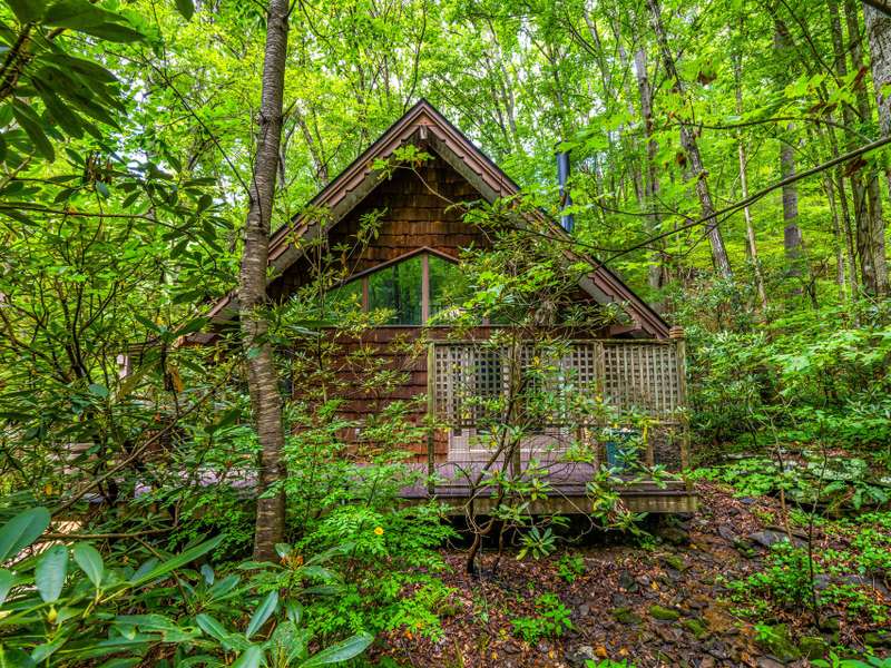 Escape to your own storybook cabin in the woods, where a rushing creek runs just beyond the deck and nature's soundtrack plays year-round. Thoughtfully updated, this chalet-style cabin offers soaring ceilings with exposed beams, an open floorplan, and a cozy wood stove at the heart of it all. Granite countertops elevate the efficient kitchen, while the main-level primary suite includes a large walk-in closet and an updated bath. Upstairs, find a versatile loft office and a second ensuite bedroom, perfect for guests or creative space. Surrounded by trees on a private lot in Chunns Cove, you're moments from Asheville's vibrant restaurants, galleries, and trails?yet feel worlds away. An ideal mountain retreat for weekends or weeks on end.