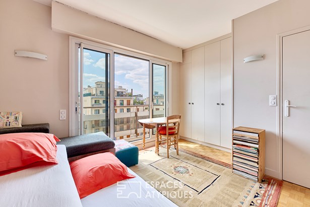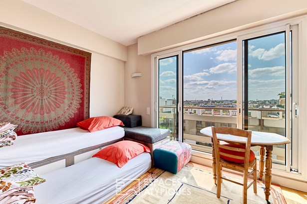 Nestled on the 6th and top floor (elevator up to the 5th) of a well-maintained, small condominium dating from 1963, this beautiful apartment of 98.90 m2 total floor area (83.72 m2 under Carrez law) offers a bright living environment with an emphasis on outdoor space.