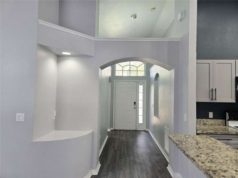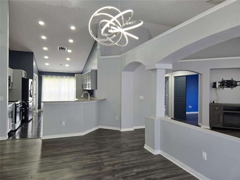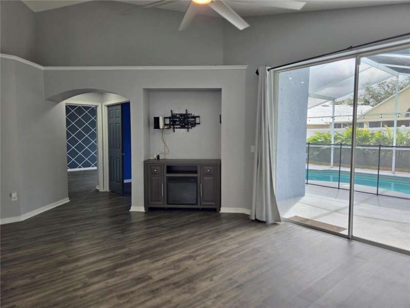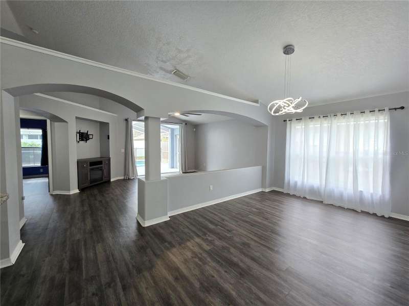 This Open and Spacious 4 BEDROOM, 2 BATH POOL HOME (with SOLAR PANELS & POOL SERVICE included) is located in the desirable and sought-after Lake St. Charles community. Beautiful interior architectural features include archways, niches and planter shelves, and you'll enjoy the nice, natural light during the day. The spacious Living and Dining Rooms overlook the peaceful lanai and pool. Eat-in Kitchen features ample storage, gas range, upgraded cabinets and countertops. Primary Bedroom has plenty of space and features a nice en suite with dual sinks, large walk-in shower, and walk-in closet. Nice Split Bedroom Plan features 2 bedrooms in the front of the home and 4th bedroom/den near the Primary. All solid surface flooring throughout. You will also enjoy the inside utility with washer/dryer included, as well as the spacious garage with built-in shelving. Lake St. Charles neighborhood features walking paths, park, community center with swimming pool and more! Very conveniently located near major commuter routes, restaurants, shopping and entertainment! Don't wait - schedule your tour of this great home today!