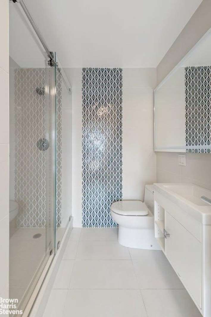 The sleek modern kitchen features Kraft maid custom cabinetry, quartz countertops, Converto Mezzo marble mosaic tiles and Bosch stainless steel appliances. A spa-inspired Embarcadero Candlestick and Dazzle mosaic accent tile bathroom offers a walk-in shower and top-of-the-line fixtures for a luxurious retreat. Additional highlights include a custom window enclosure for the heating and air conditioning system, generous closet space with custom barn doors and a spacious living area perfect for entertaining or relaxing.