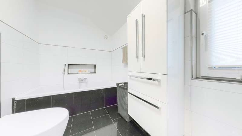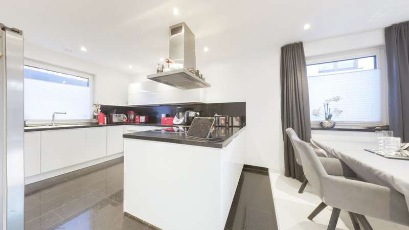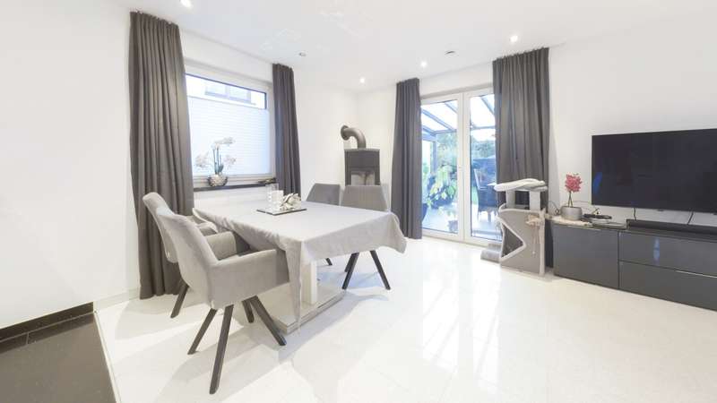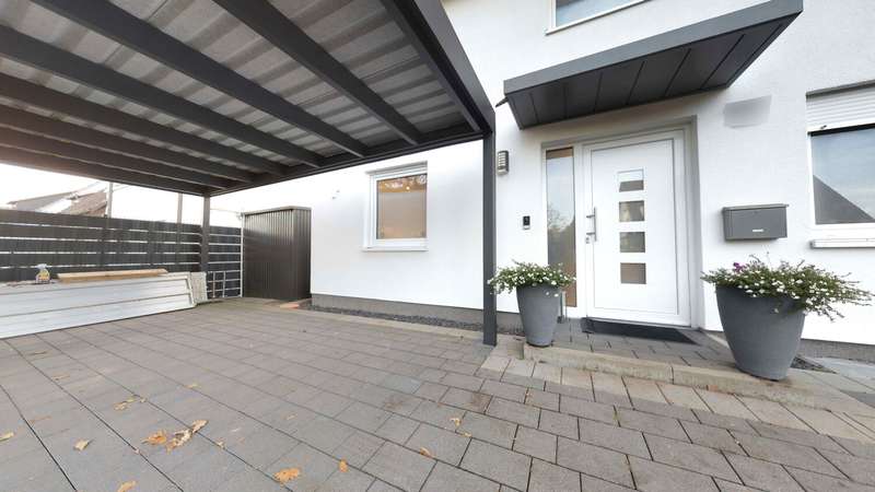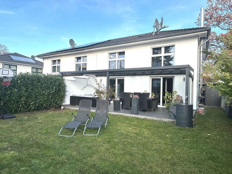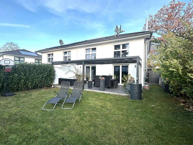 This as-new semi-detached house built in 2015 is in extremely well-kept condition and boasts contemporary architecture and high-quality fittings. The property is located on a plot of approx. 296 m² and offers generous space for the whole family with a living area of approx. 130 m². The family-friendly floor plan with a total of four rooms, including three bedrooms, is optimally designed to meet the needs of modern households. The house conveys an inviting ambience as soon as you enter. Large windows in all living areas create a pleasant, light-flooded atmosphere. The open-plan living and dining area is the heart of the house and invites you to spend time with family and friends. A high-quality wood-burning stove with a separate external chimney creates pleasant warmth on cooler days and rounds off the cozy living atmosphere. The exclusive kitchen with modern cooking island and granite worktop impresses with its high-quality equipment and enables comfortable cooking at a high level. The underfloor heating, which is located throughout the house and even in the basement, ensures a pleasant indoor climate at all times. The property meets the energy-efficient KfW 70 standard and is equipped with a modern ventilation system that contributes to a healthy living environment. The bathroom has a stylish and functional design, high-quality fittings and a well thought-out room concept with a bathtub and floor-level shower. An additional, comfortably developed full basement opens up a wide range of possible uses, whether for hobbies, as a teenager's or guest room, home office or storage space. The building services are also housed here. Both the façade and the interior have recently been repainted, which further enhances the well-kept overall appearance of the house. Numerous modernizations have also been carried out since 2022, including the construction of a spacious, covered terrace. Here you can relax after work and enjoy the afternoon sun, as the terrace and garden face west. The garden is lovingly landscaped, cannot be seen and offers a separate garden shed and practical storage space for wood. Two convenient carport parking spaces are available for your vehicles, rounding off the offer harmoniously. The quiet location within a mature neighborhood is particularly appealing to families and offers a pleasant living atmosphere. This offer is aimed at prospective buyers who value a high-quality property in mint condition with well thought-out fixtures and fittings and are interested in low energy and operating costs. We would be happy to arrange a viewing appointment and provide you with further information. Discover the many advantages of this house - we look forward to hearing from you!