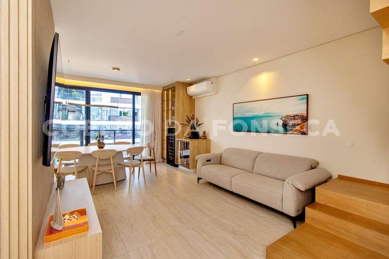 O duplex foi terminado com os melhores acabamentos do mercado, piso de porcelanato Portobello, móveis planejados Florense, eletrodomésticos Gorenje revestidos, incluindo lava-louças, ar condicionado nos ambientes, paredes revestidas de Pasinato italiano, bancada do banheiro em Corian, conta com 2 banheiros, sendo um amplo e aberto com banheira de infusão da Sabbia e cama king size no quarto. Agende sua visita.