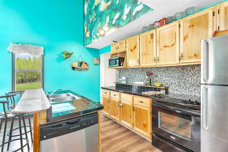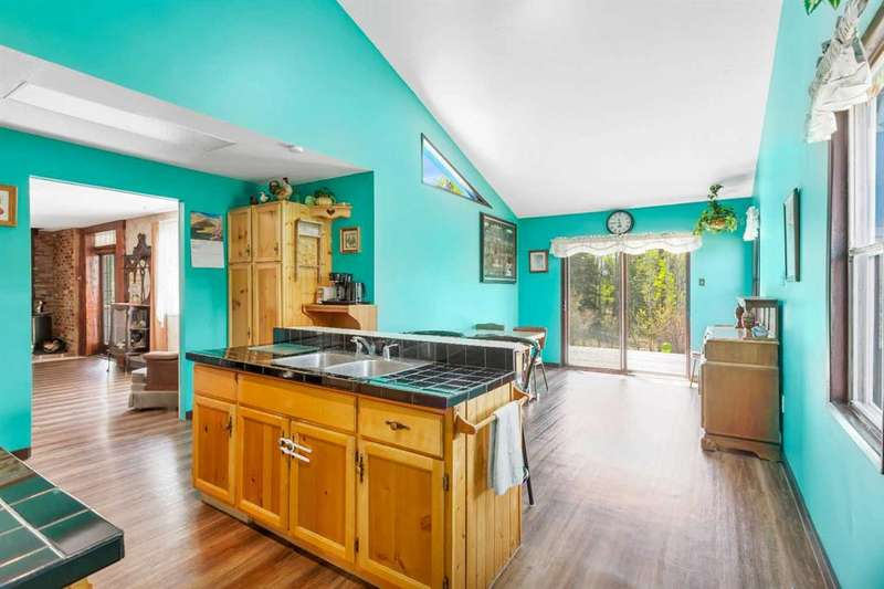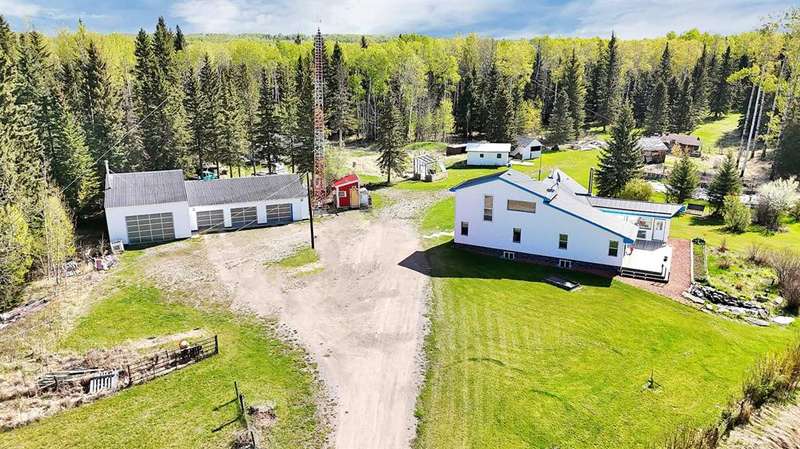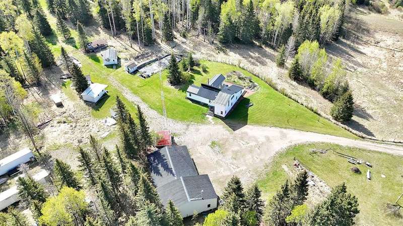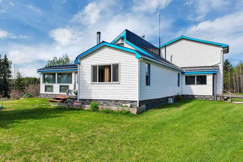 A Hidden Paradise Just Minutes from Sundre! Welcome to your private sanctuary—153 acres of unspoiled nature, fresh air, and pure Alberta charm nestled in the West Country, just minutes from Sundre. Whether you're seeking a peaceful retreat, a thriving hobby farm, or the ideal home base for country living, this one-of-a-kind estate delivers it all. At the heart of the property is a custom 1½-story home with 2,775 sq ft of thoughtfully developed living space, 4 spacious bedrooms, and 2 bathrooms. Step inside to discover new vinyl plank flooring, an inviting wood-burning stove, and a bright country kitchen framed by glowing pine cabinetry and soaring ceilings wrapped in artistic flair. From the cozy living area, you can walk out onto a sprawling deck or unwind in the tranquil three-season sunroom, sipping coffee while listening to the wind whisper through the trees. The main floor primary suite offers quiet comfort, with a second bedroom ideal as a guest space or home office. Upstairs, a lofted lounge and additional bedroom provide a peaceful retreat. The fully developed basement includes a family room and fourth bedroom, plus dual washer/dryer sets—perfect for hardworking homesteaders or gardening enthusiasts. Outside is where the magic continues. A quad garage with a car hoist is ready for projects big and small, with roughed-in in-floor heating, & 4 separate overhead doors. For animal lovers, a goat shed, chicken coop, and power-equipped turkey house await. Fenced pasture, a greenhouse, garden plot, and multiple sheds support your dream of self-sufficiency or sustainable living. 10 acres are securely fenced, 40–50 acres are open pasture, and the remaining land is rich with mature trees and roaming wildlife—from deer and elk to moose and waterfowl. And with a registered $4,450/year surface lease income, the land works for you while you enjoy it. Whether you envision a private retreat, a thriving hobby farm, or simply room to breathe fresh air, this is the kind of property where stories are born and memories are made. “Home Is Where Your Story Begins1”—come write yours in the West Country wilderness. Must See Property to Truly Appreciate.