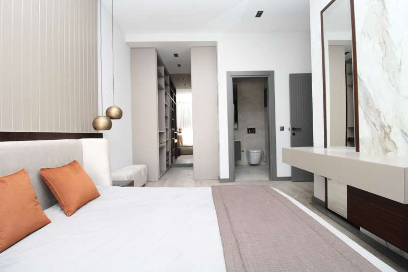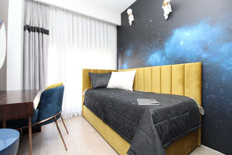 The newly-built apartments are situated in a complex on 12.669 m² plots of land. The project offers a comfortable living space with a hotel concept. There are 126 apartments and 10 villas in the residential complex. Each apartment has a parking space. Rich amenities of the project include a panoramic lift, aquapark, lobby, bar, cinema room, gym, walking trail, Turkish bath, sauna, basketball field, playground, tennis court, PlayStation room, sandbox, chill-out areas, football field, valet service, gazebos, fire pit, and 24/7 security service.