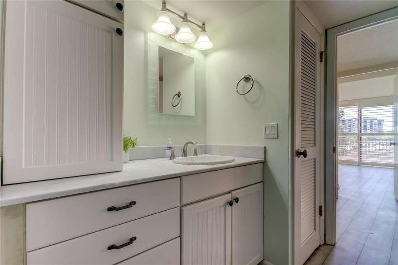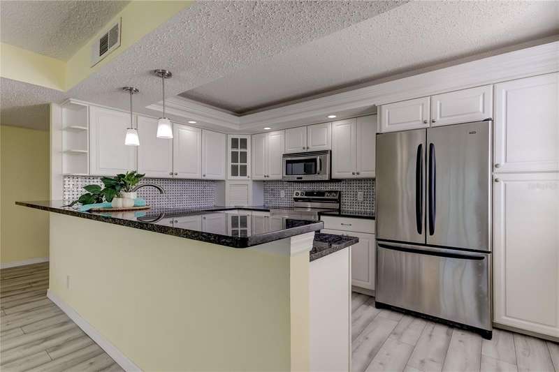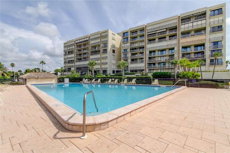 NEW PRICE IMPROVEMENT! SELLERS ARE VERY MOTIVATED! Gorgeous 2 bedroom, 2 bathroom condo on Sand Key in Clearwater Beach! Welcome to your dream retreat! Once you step inside, you will LOVE the open floor plan and how natural lighting floods the space! The updated kitchen boasts wood cabinets, granite counters and stainless steel appliances (dishwasher-2024, stove-2023, backsplash-2023, sink-2024) There is amazing brand-new laminate flooring (2024) throughout the condo which will lead you through the living area to the hurricane rated sliding glass door that takes you out to your private balcony where you can soak up the ocean breeze and view the sunsets! The large primary bedroom also has fabulous triple sliding glass doors out to the balcony, as well two closets with built-ins! The en-suite bathroom comes complete with a double vanity, walk-in shower, wood cabinetry and granite counter tops (Bathroom Faucets-2024, Mirror-2024, Shower Door-2024). The second bedroom is light, bright and delightful with a large closet for storing extras and sliding glass doors out to the balcony. There are plantation shutters in BOTH bedrooms, as well as in the living room! There is a convenient stackable washer and dryer inside the unit, as well as a new hot water heater (2023) AND a new HVAC! (2023) This condo also includes reserved parking, a sparkling pool, outdoor grill and much more! Sand Key not only has the MOST STUNNING white-sand beaches, but it is also surrounded by vibrant local dining, and adorable shops and boutiques. This is a rare opportunity to own a piece of paradise on one of Florida's most sought after beach destinations!