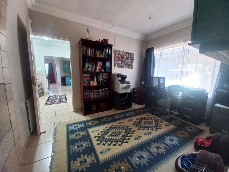 Ster Park - For the extended family / working from home! Corner stand, tiled roof, well maintained home offering 3 living areas, private patio with braai, big kitchen with scullery and laundry. 3 bedrooms, 2 bathrooms, study, closed Lapa with bathroom. Established garden with borehole, 2 JOJO water tanks and a swimming pool. Flatlet with 4 bedrooms, 1 bathroom, lounge, kitchen. Separate entrance. Can be used as offices. Plenty carports for more than to park. Alarm system. Fully fenced. Walking distance from school.