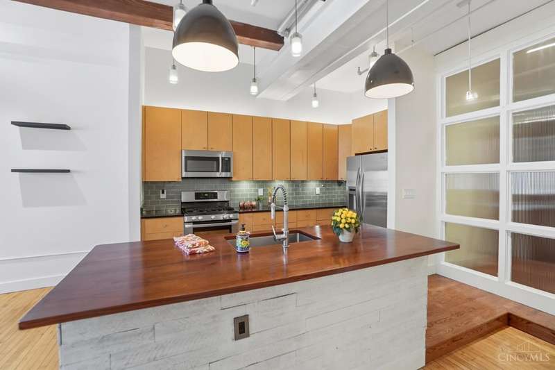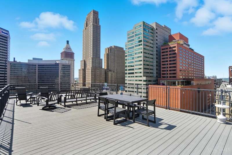 Private, Peaceful & Perfect! Light Floods This Chic Loft With 1 Large Bdrm, Flex Rm Used as Study or Extra Bdrm & Garage in Central Downtown! 1-Flr Living Boasts 13' Beamed Ceilings, Exposed Steel Ductwork & Brick Front Wall, Gorgeous Rustic Original Hdwds, Contempo Bdrm Glass Wall & New Primary Bath. Relax In The Lg Open Great Rm w/Beautiful Tall Wndws & Custom Plantation Shutters. Gourmet Kitchen w/ 42'' Wood Cabinets, Stainless Appliances, Undermount Lighting & Granite Island. Stunning City Views From Rooftop Deck, 1-Car Assigned Parking Garage, Bike Storage Accessible By Elevator & An Updated Building Security System. Steps Away From the Aronoff, Contemporary Arts Center & Fountain Square! An Entertainers Dream Located on Thriving 6th Street Bringing Historic Charm To This Modern Condo. Escape To Your Own Private Oasis in the Heart of the City w/Soaring Ceilings, Custom Finishes & Panoramic Views - You'll Feel Like You're On Top of the World! A Perfect Blend of Rustic & Chic...