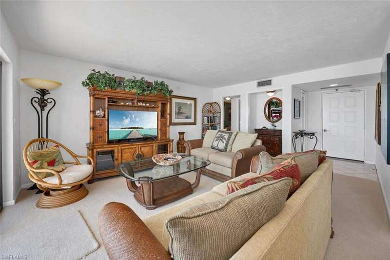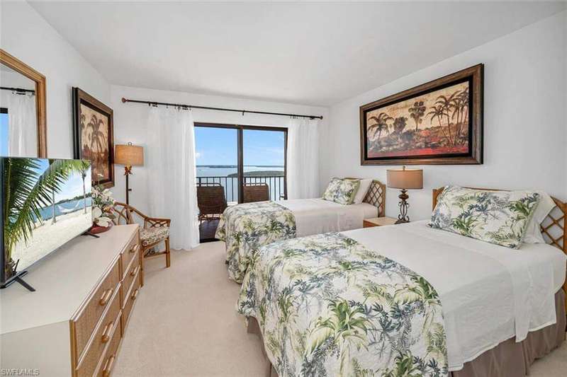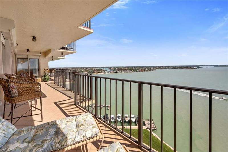 Welcome to Shipp's Landing - Marco Island's premier waterfront destination! This stunning 15th-floor residence in the highly desirable south-facing 24 stack offers breathtaking panoramic views of the Gulf of Mexico, Caxambas Pass, and the Ten Thousand Islands. Watch dolphins play and boats cruise by from your private, oversized balcony perched high above the sparkling waters. Step inside through the floor to ceiling glass doors and find a welcoming, turnkey-furnished home filled with warm, natural light and endless views. The extensive balcony, large living-dining area, and modern kitchen with considerable countertop and cabinet space make this home in the sky the perfect place for hosting your family and friends. The primary suite is a true retreat with balcony access, sweeping water views, and a large ensuite bathroom featuring a double vanity and walk-in shower. Guests will feel at home in the comfortable second bedroom with adjacent full guest bath. Additional features include in-home laundry room, a large storage closet off the hallway, and covered parking. Shipp's Landing is a private community renowned for its resort-style amenities including three pools, a spa, a state-of-the-art fitness center, tennis and pickleball courts, boat docks, a private beach area with kayak launch and storage, fishing pier, bocce, shuffleboard, and clubhouses - all nestled along beautifully landscaped grounds. Whether you're seeking a full-time residence, a seasonal getaway, or a smart investment opportunity, this residence offers the perfect blend of luxury, comfort, and unbeatable island lifestyle. Move-in ready and waiting for you to make it your own! Don't miss this rare opportunity to own one of the best vantage points Marco Island has to offer. Schedule your private showing today! Estate sale.