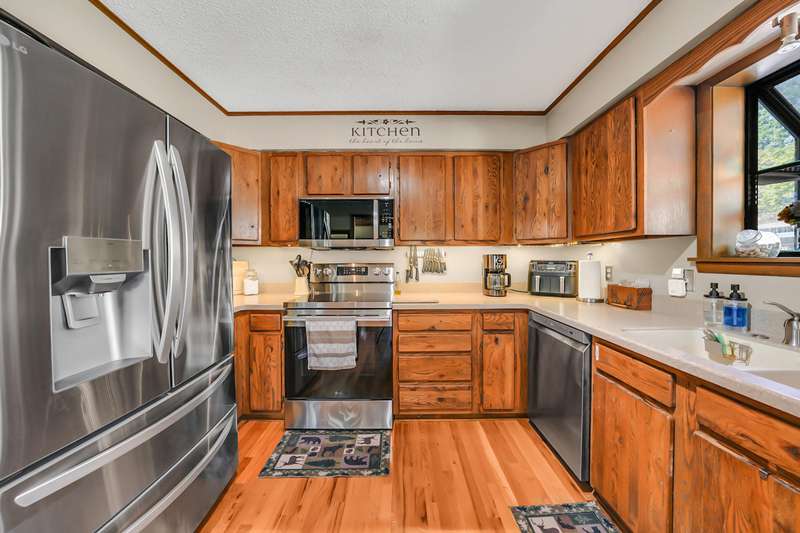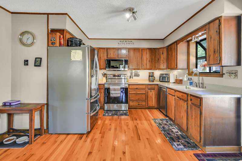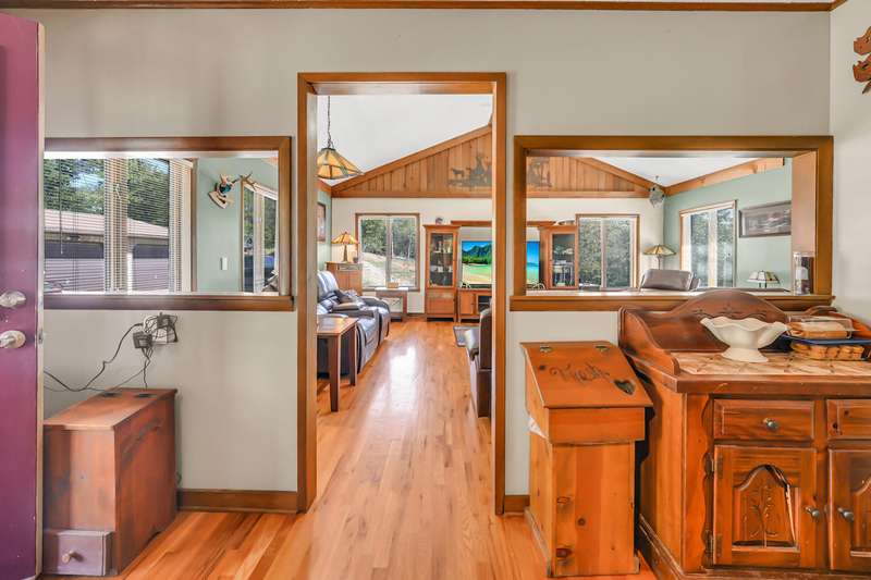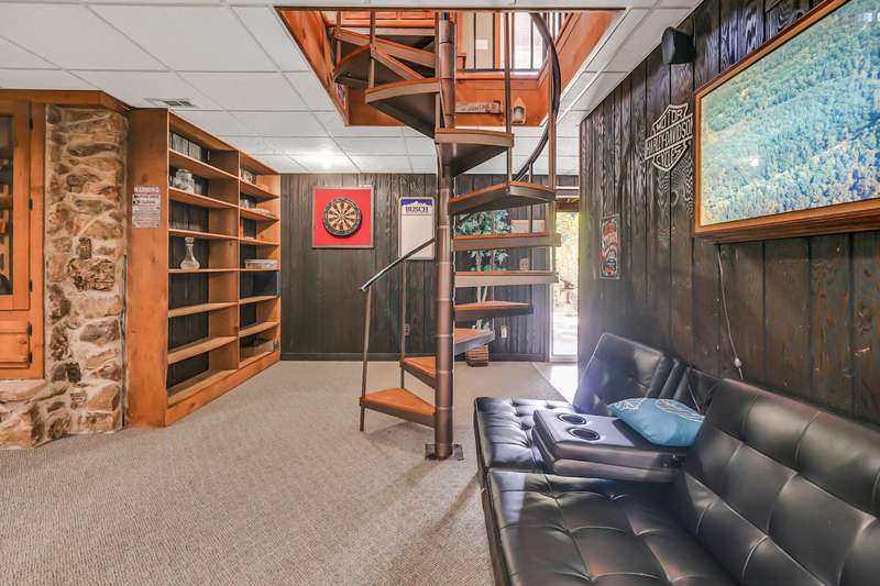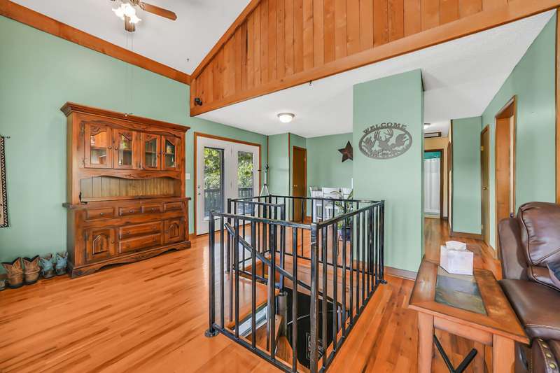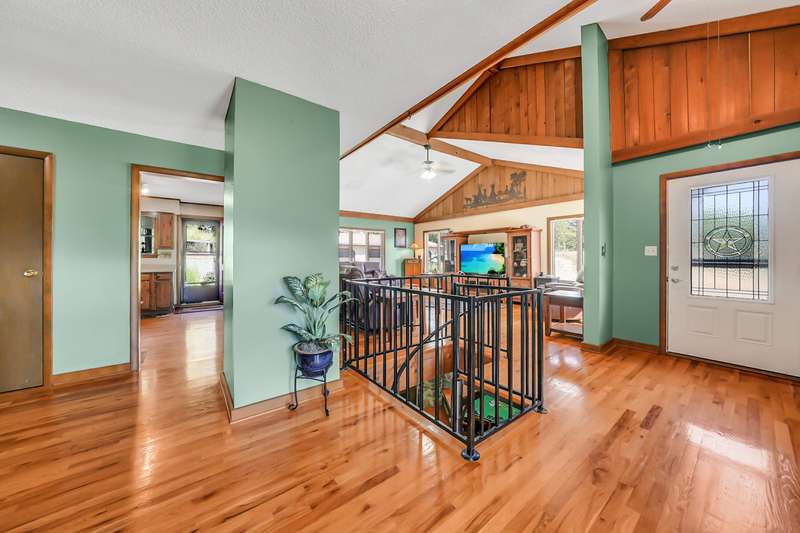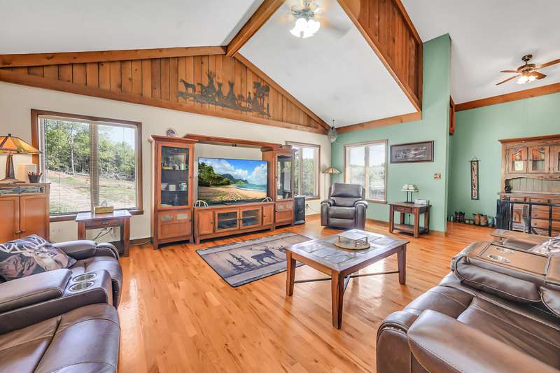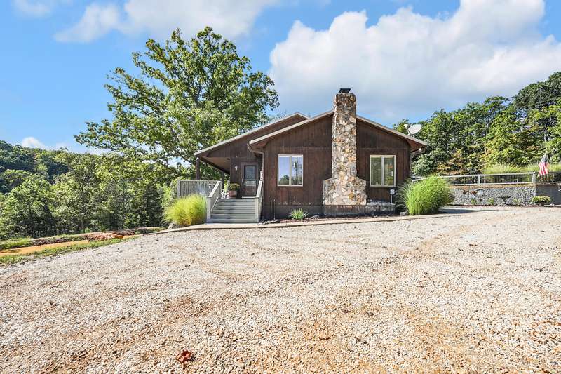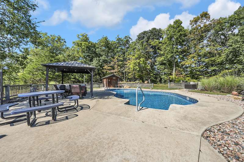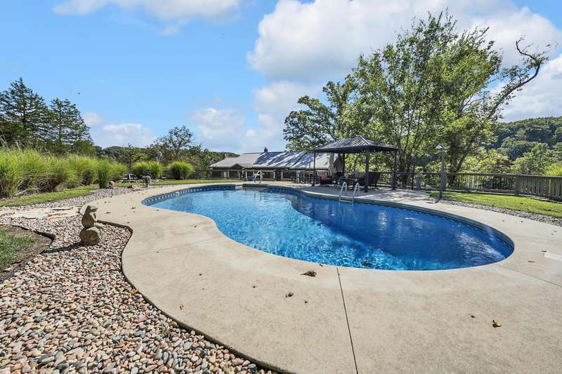 Stunning country retreat on 48 acres! This 3-bed (3rd non-conforming), 3-bath home features vaulted ceilings, hardwood floors, and abundant natural light throughout the main level. Enjoy scenic views from the covered porch off the master and dining room. Kitchen boasts stainless appliances and solid surface counters. Large master bedroom with a sitting room and walk in closet. The spiral staircase leads you to the lower level that has card table, pool table, oak bar, full bath, and 3rd bedroom. Outside: 45x30 detached 3-car garage w/200 amp service, landscaped in-ground pool, gazebo, and pool house. Explore trails, creek, cave, and prime hunting spots with abundant wildlife. A rare find with charm, privacy, and adventure! Truly a must see to believe what this private get away has to offer