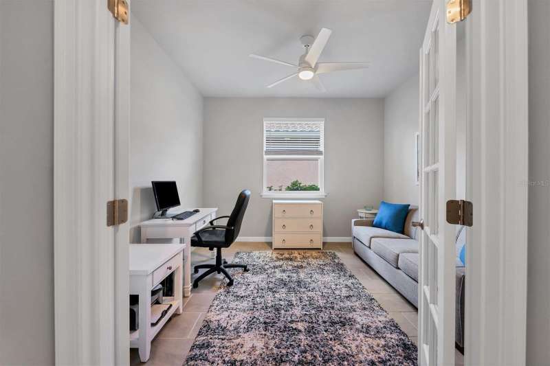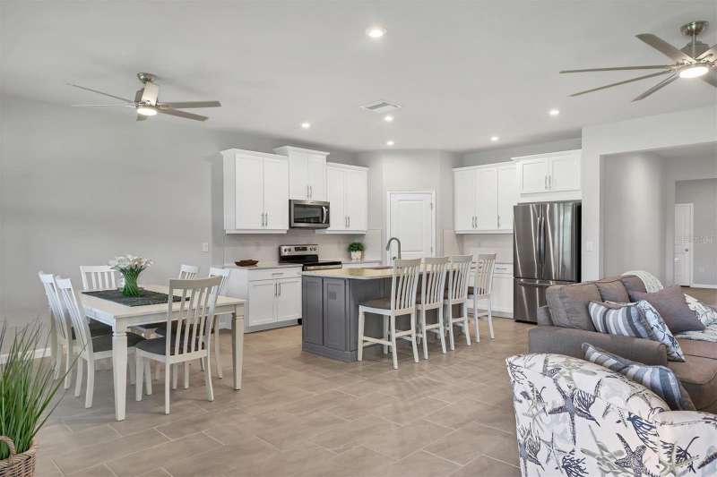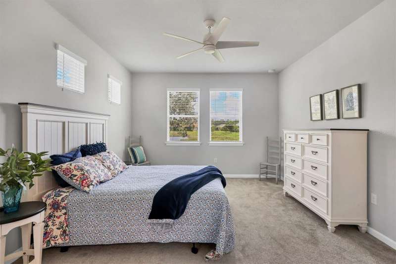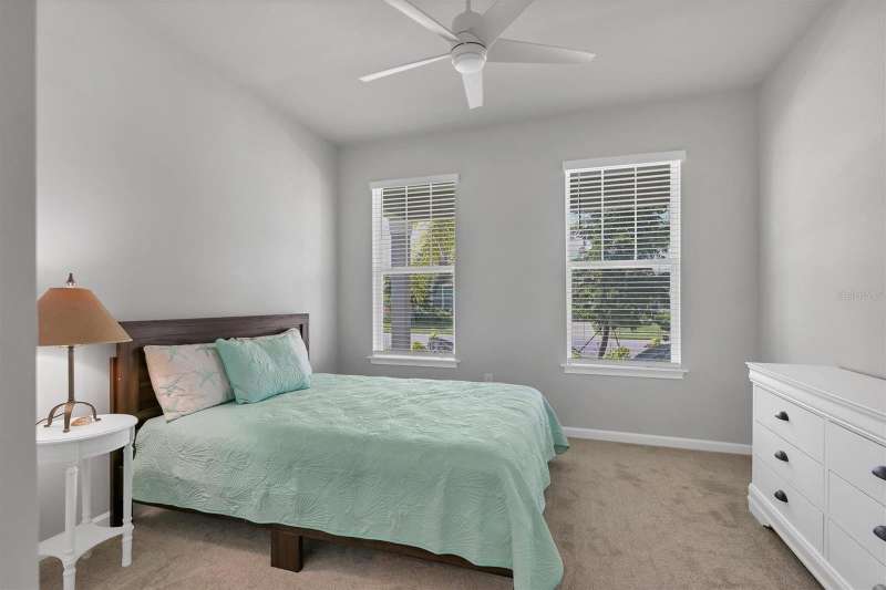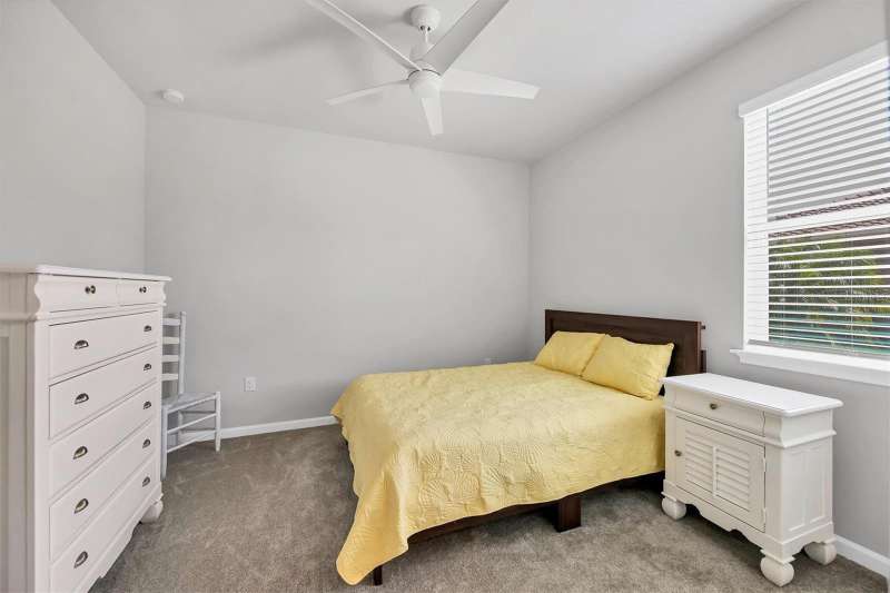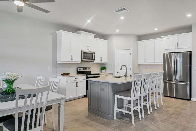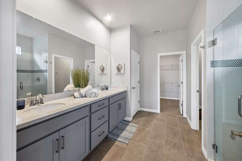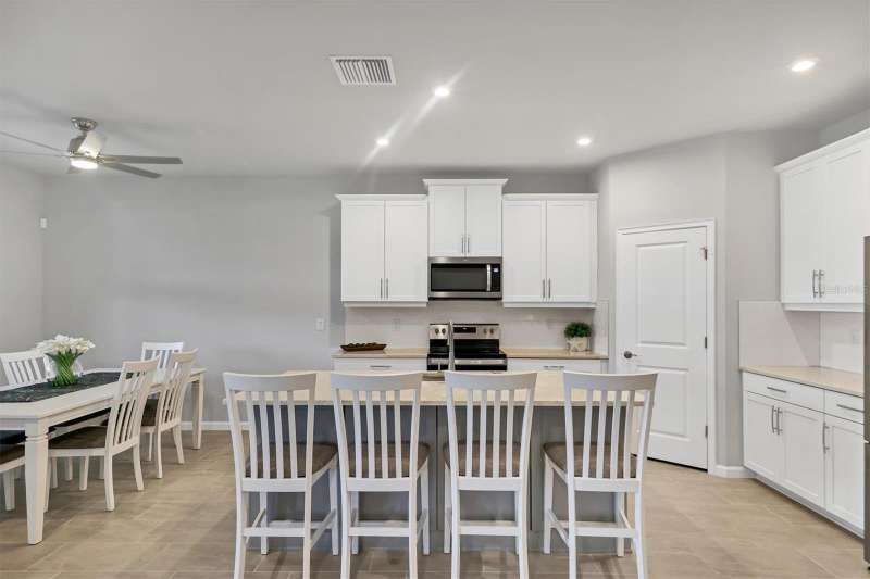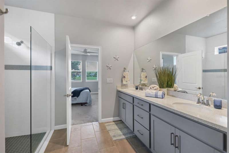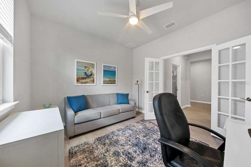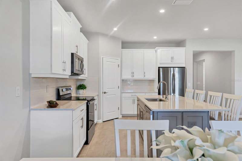 This stunning home offers modern living at its finest and feels like new, with a perfect blend of modern elegance and serene comfort. An appealing front porch welcomes you to the home and provides a great spot to relax. Step inside to discover elegant tile flooring throughout the foyer and the main areas, with carpet in the bedrooms, all presented in a soothing natural color palette. The kitchen is a chef’s delight, showcasing sleek white cabinets and a spacious island with gray cabinets. The beautiful quartz countertops, and convenient corner pantry provide ample space whether for yourself or while entertaining. This home has 3 spacious bedrooms, plus a versatile flex room, perfect for an office, workout space, or playroom. The primary ensuite bedroom and bathroom features a walk-in shower, double sink vanity, and a spacious walk-in closet. The sliders and windows in the living and dining room provide light to the great room and access to the screened lanai, which is the perfect place for coffee in the morning and cocktails in the afternoon while overlooking a lake. Plus, the backyard has room for a pool. Furniture is all available making your move easy, just bring your toothbrush! Located in the desirable Renaissance community, residents enjoy access to fantastic amenities, including a community pool, gym, and pickleball courts. Also, the HOA takes care of the lawn and landscape for you. Enjoy nearby Downtown Wellen Park with daily entertainment, shopping and restaurants, along with walking paths and bike trails. Enjoy relaxing beside the large lake or on it with a kayak or paddleboard. And fishing is allowed. The Cool Today Park is within two miles... this is the spring training stadium for the Atlanta Braves, plus has additional featured entertainment year long. No need to travel far for shopping, there’s a Publix Plaza, Costco Warehouse, and more in Wellen Park. Schools and future medical facilities are in construction now. Motivated seller, bring an offer.
