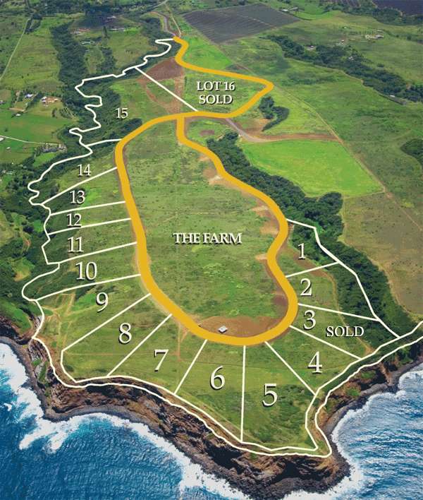 One of only two remaining lots for sale in Pe'ahi Farms and construction of new homes is currently underway. Lot 13 is extremely private, overlooking the eastern gulch that’s adjacent to the property. This 15.601-acre parcel offers breathtaking views of Haleakala and the Pacific Ocean. Careful planning integrates just 16 custom estate sites centered around agricultural open space. Set atop 130 ft. bluffs at Opana Point, at the northernmost point of Maui’s North Shore, these shovel ready building sites are ready to be built upon. Each lot has the SMA approval for building within the building envelope. With multiple options such as building a house and cottage, just a house, or starting with a small footprint (and budget) you could build the cottage first. The community takes its name from the nearby big wave surf break commonly called Jaws, whose Hawaiian place name is Pe‘ahi, meaning wave. Pe‘ahi Farms offers sweeping views of the Pacific Ocean, upcountry Maui and the slopes of Haleakala, the West Maui Mountains, the island of Molokai, and the rugged coastline that hugs the winding Road to Hana. The breezy bluff property, cooled by prevailing trade winds, gently slopes and undulates, enhancing views and privacy by design – each home site is purposefully chosen to maximize both.