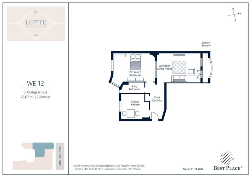 The offer includes a rented 2-room apartment in a beautiful Wilhelminian-style old building in Charlottenburg. Built in 1900, the classic Wilhelminian style building opposite Charlottenburg Palace has 11 residential units and 4 commercial units. With a total of approx. 78.07 m², the space on offer here is very well frequented due to its top location.