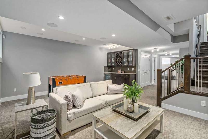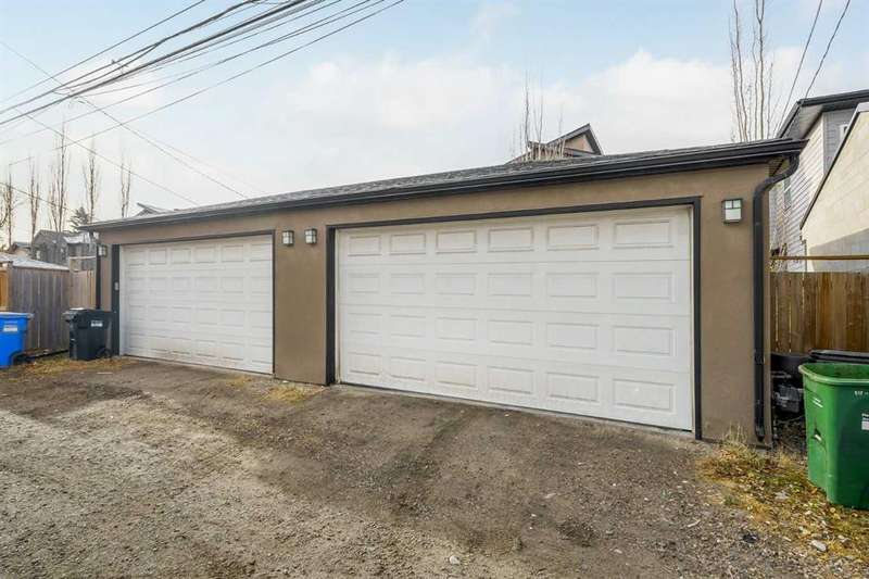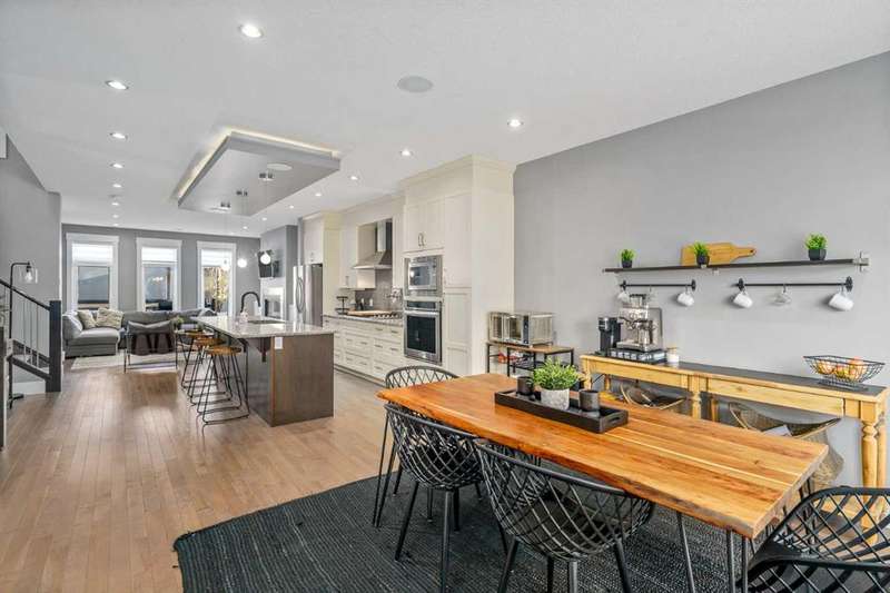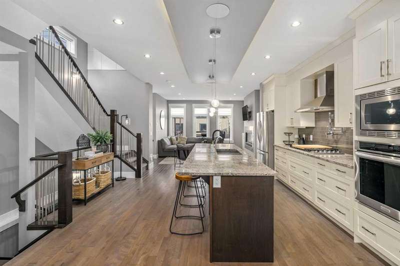 Welcome to your dream home in the heart of Montgomery, one of Calgary’s most sought after and revitalized inner city communities! This stunning, fully finished custom built infill offers approx 2800sq. ft. of beautifully maintained living space featuring 4 bedrooms, 3.5 bathrooms, and a double detached garage. Step inside to discover an inviting open concept main floor with 9’ ceilings, gleaming hardwood floors, and a sun filled living room anchored by a sleek gas fireplace with custom built-in shelving. The chef’s kitchen impresses with premium stainless steel appliances including a VIKING gas cooktop, pot filler, and an oversized granite island, perfect for entertaining. Additional main floor highlights include a spacious mudroom, bright dining area, and built-in speakers throughout. Upstairs, unwind in the luxurious primary suite complete with a spa-inspired 5-piece ensuite featuring a large steam shower, oversize jetted tub, dual vanities, and heated floors. Two additional bedrooms, a stylish 4-piece bath, and a convenient upper-level laundry complete the second floor. The fully developed basement adds incredible versatility with a large recreation room, wet bar, 4th bedroom, full bath and ample storage. Outside, enjoy low-maintenance landscaping and a custom deck with pull-down shades, the perfect spot for summer evenings. The home also features a water softener and reverse osmosis system for your comfort and peace of mind. Ideally located steps from the Bow River, parks, schools, pathways, and just minutes to popular restaurants, coffee shops, COP, Market Mall, and major routes, this property blends modern luxury with unbeatable convenience. Don’t miss your chance to call this exceptional Montgomery home your own!