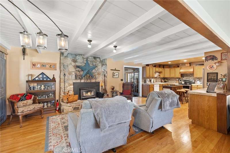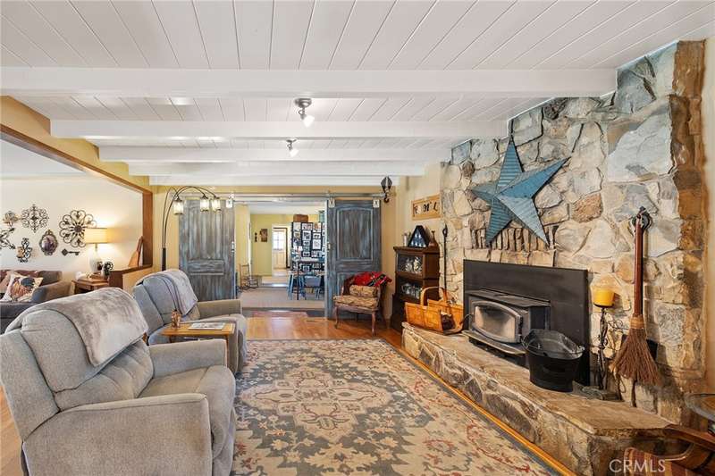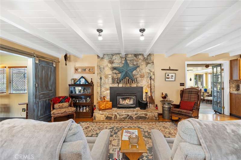 Step inside to an inviting sunroom that bathes the home in natural light, complemented by a cozy wood-burning Franklin stove in the living area and a traditional wood-burning fireplace. The interior exudes warmth with original hardwood floors throughout, while the elegant en suite bathroom boasts a luxurious footed tub.