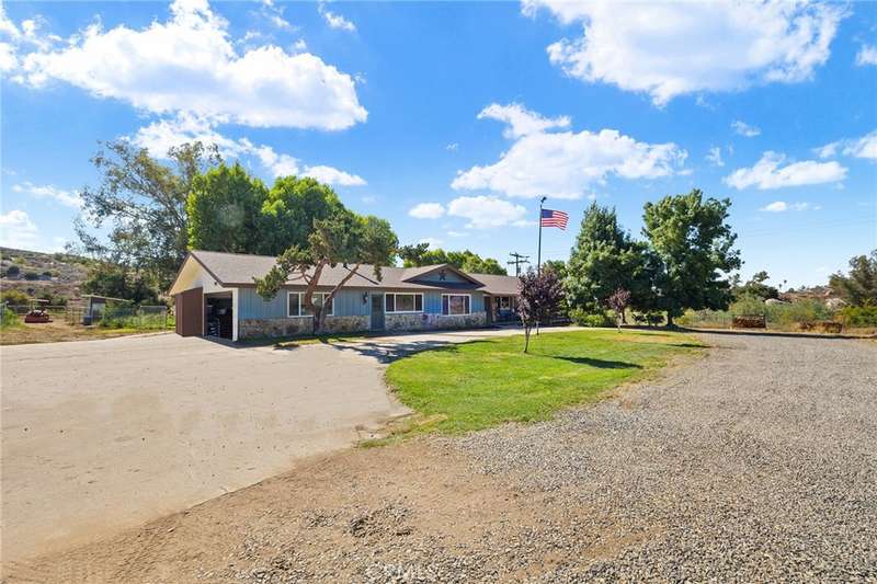 Discover the enchanting charm of this beautifully appointed farmhouse, nestled on over 67 acres of stunning agricultural land. Surround yourself with breathtaking landscapes adorned with majestic boulders, flourishing oak trees, and nature's own walking trails. Revel in the breathtaking sunsets, all just minutes from the renowned Temecula wine country and the serene Diamond Valley Lake.
