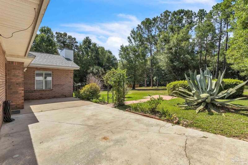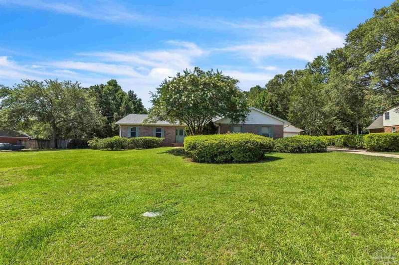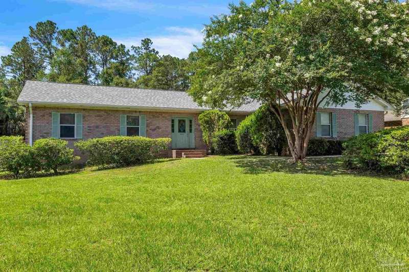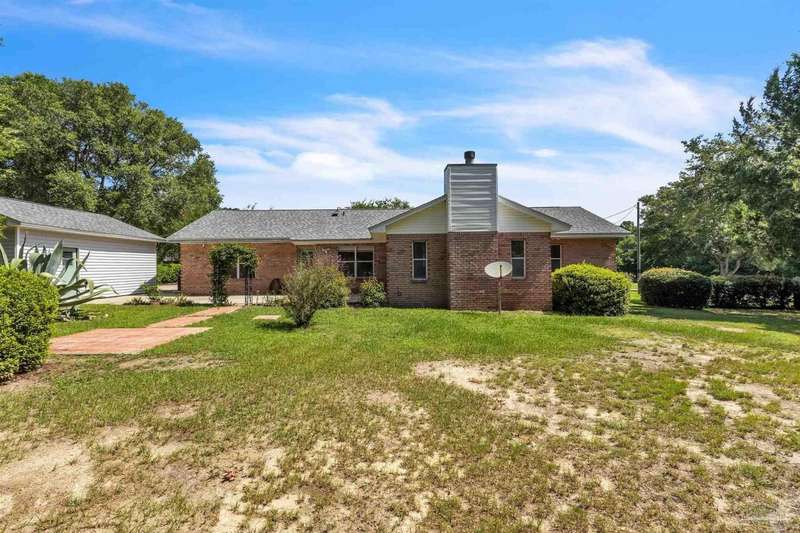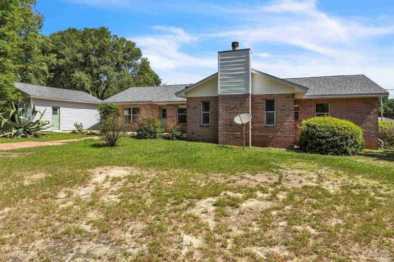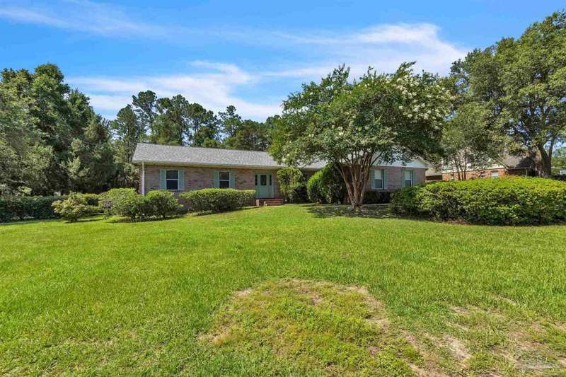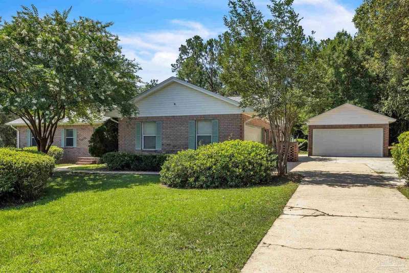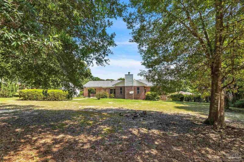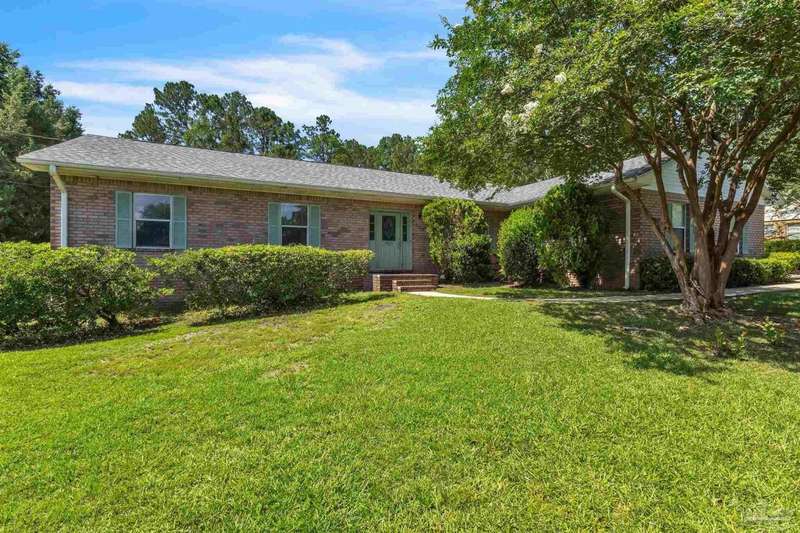 Close to Pensacola, amazing schools, outdoor adventures, and pristine beaches, This Large 4 bedroom/3 bath brick home, situated on 1 acre of land in the heart of Pace, FL is ideal for someone wanting a quiet and serene homestead while just minutes away from shopping and entertainment. Located in the sought after neighborhood of Whispering Woods, just off Berryhill Rd, this home is being offered for the first time. As you arrive, you will notice the excellent curb appeal, long driveway, and additional detached garage. Once inside, you will step into a well thought out floor plan, with a separate dining room, large family room with beautiful real hardwood floors and fireplace, an eat in kitchen, and access to the back veranda and private Primary Suite, w/ large walk in closets and bathroom. This home has an absolute perfect split floor plan. The first guest bedroom/office is found upon entry, with the remaining two just down the hall past the recently remodeled guest bathroom. The largest guest bedroom, overlooking the beautiful park-like backyard, includes an additional full bathroom. The home also has a brand new A/C System, a new 2 year old roof, and newer stove/range top & dishwasher and attached garage.