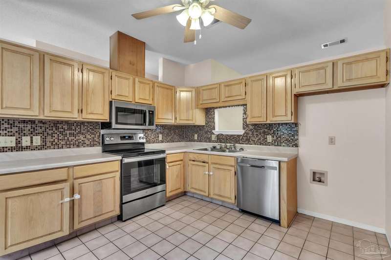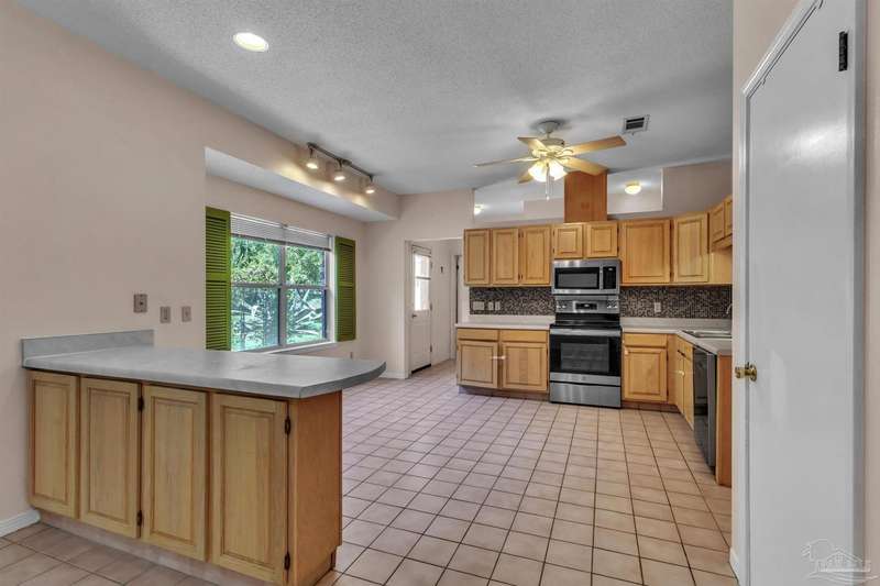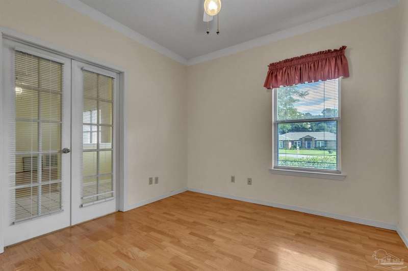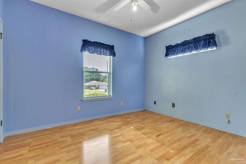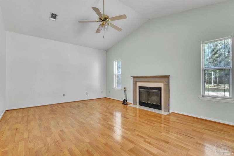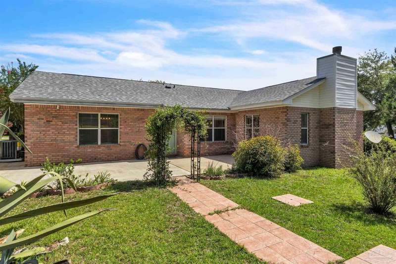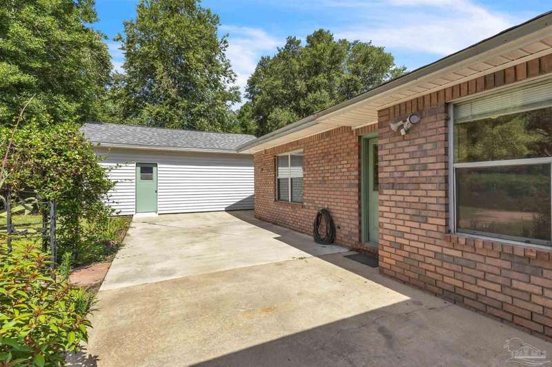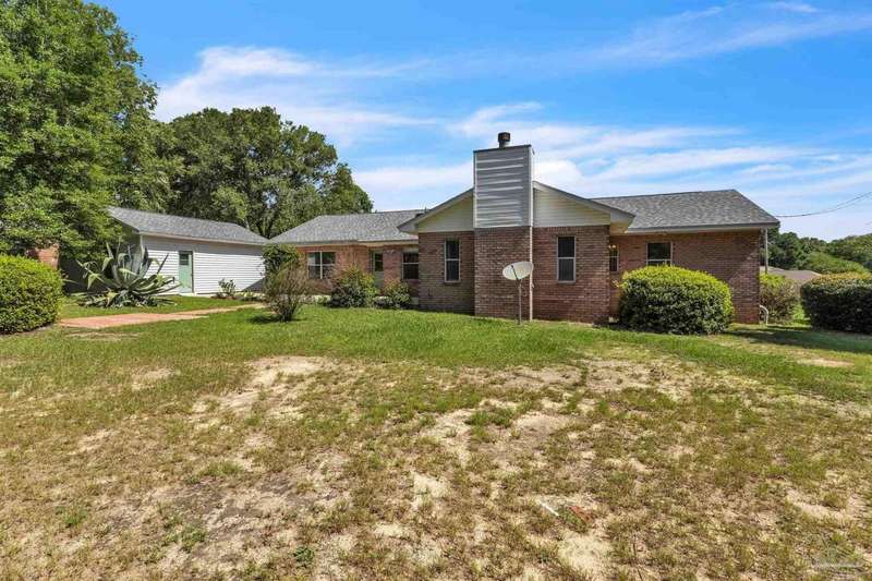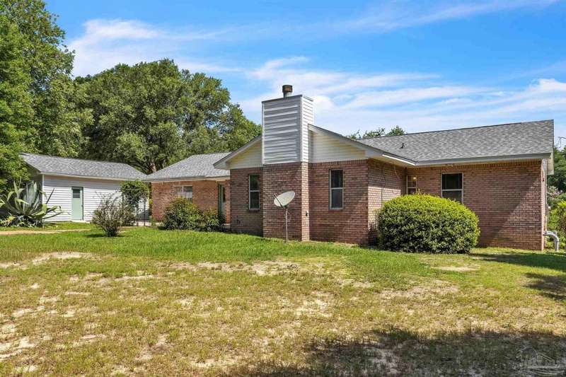 Close to Pensacola, amazing schools, outdoor adventures, and pristine beaches, This Large 4 bedroom/3 bath brick home, situated on 1 acre of land in the heart of Pace, FL is ideal for someone wanting a quiet and serene homestead while just minutes away from shopping and entertainment. Located in the sought after neighborhood of Whispering Woods, just off Berryhill Rd, this home is being offered for the first time. As you arrive, you will notice the excellent curb appeal, long driveway, and additional detached garage. Once inside, you will step into a well thought out floor plan, with a separate dining room, large family room with beautiful real hardwood floors and fireplace, an eat in kitchen, and access to the back veranda and private Primary Suite, w/ large walk in closets and bathroom. This home has an absolute perfect split floor plan. The first guest bedroom/office is found upon entry, with the remaining two just down the hall past the recently remodeled guest bathroom. The largest guest bedroom, overlooking the beautiful park-like backyard, includes an additional full bathroom. The home also has a brand new A/C System, a new 2 year old roof, and newer stove/range top & dishwasher and attached garage.