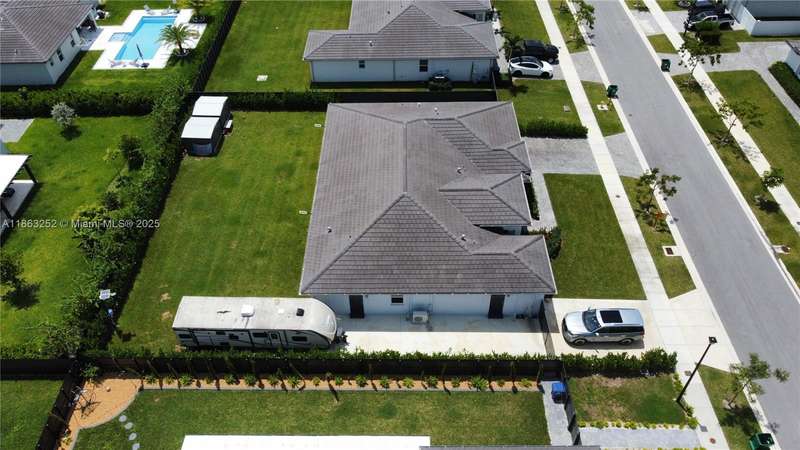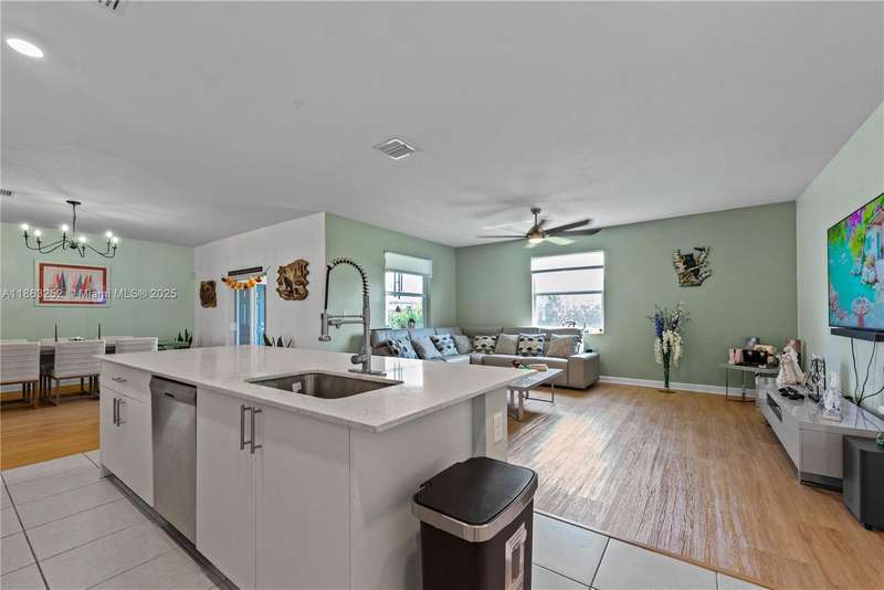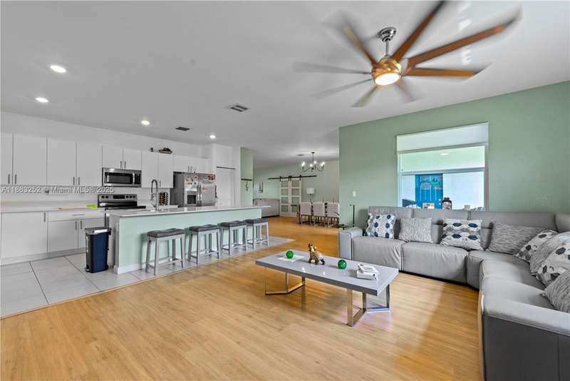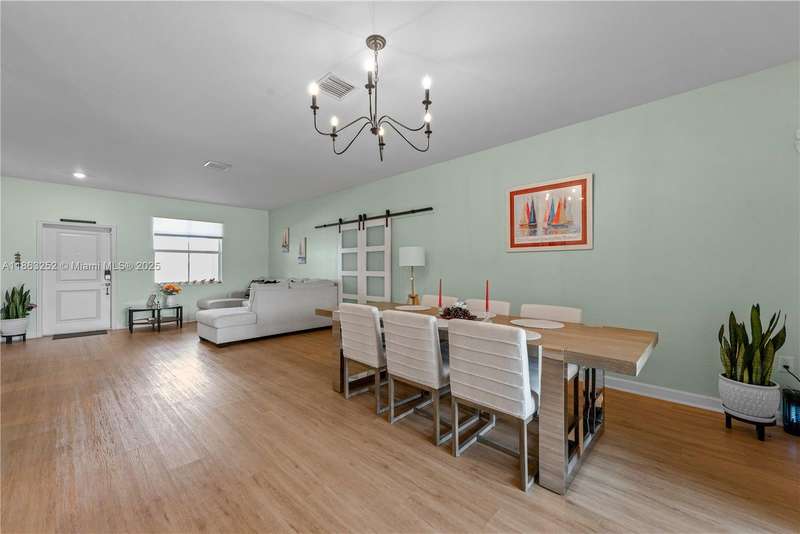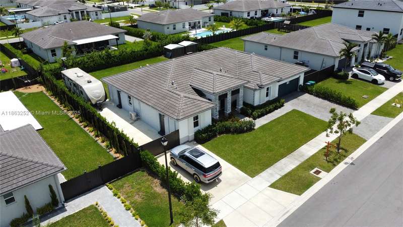 Elegant 5BR/4.5BA Estate featuring sleek tile & laminate floors, impact windows, designer shades, and custom barn doors. Gourmet kitchen boasts white cabinetry, stainless steel appliances, Corian countertops, island with sink & pantry. Formal dining with chandelier, spacious family room, and covered patio with pavers—perfect for entertaining. In-law suite with private entry, kitchen, split A/C, and 2 full baths. Lavish master with tray ceiling, spa-style bath, dual sinks, glass-enclosed shower, and walk-in closet. 2-car garage, laundry room, fenced yard, LED lighting & more. NO HOA!! PROOF OF FUNDS AND/OR PRE-APPROVAL LETTER REQUIRED PRIOR TO SCHEDULING A SHOWING OF THE PROPERTY!