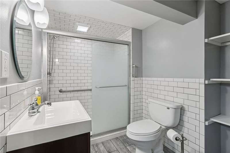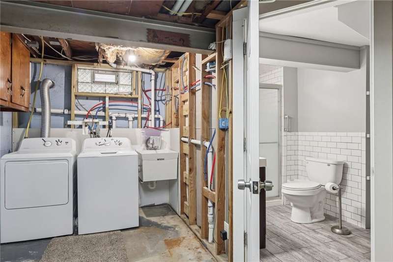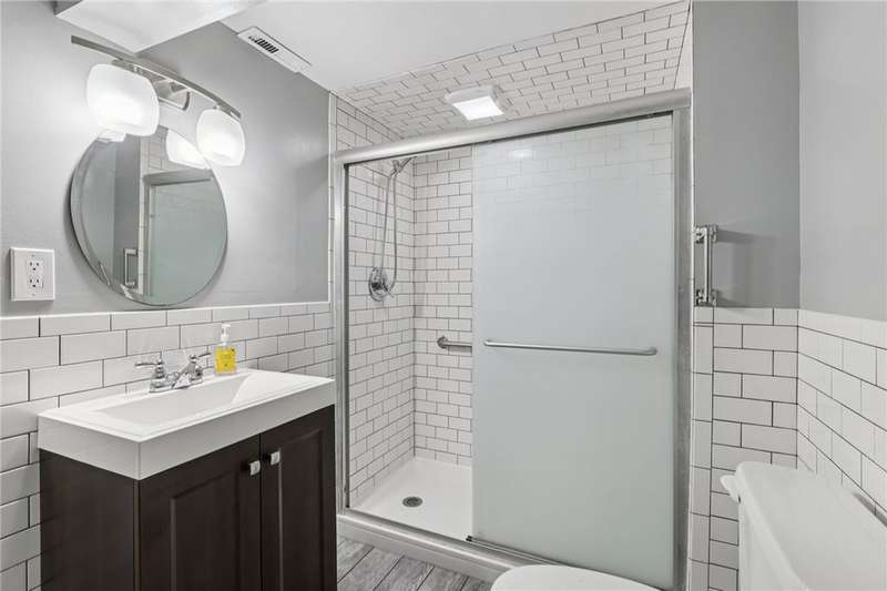 Brick ranch home located in West Mifflin. The main level features three bedrooms(hard wood under carpets), spacious living room with a beautiful bay window, dining room with ceiling fan and kitchen equipped with a refrigerator, stove and dishwasher for your convenience. Full bathroom with a tub/shower combination complete this level. The lower level offers a game room and a new full bathroom with a walk in shower, subway tiles, ceramic flooring, vanity and commode. The laundry room comes with a washer and dryer. Extra storage shelving in the utility room is a bonus! Ample closet space through out along with attic storage. The spacious driveway could easily fit up to six cars. The back yard patio great is great for out door gatherings. Convenient location close to area amenities.