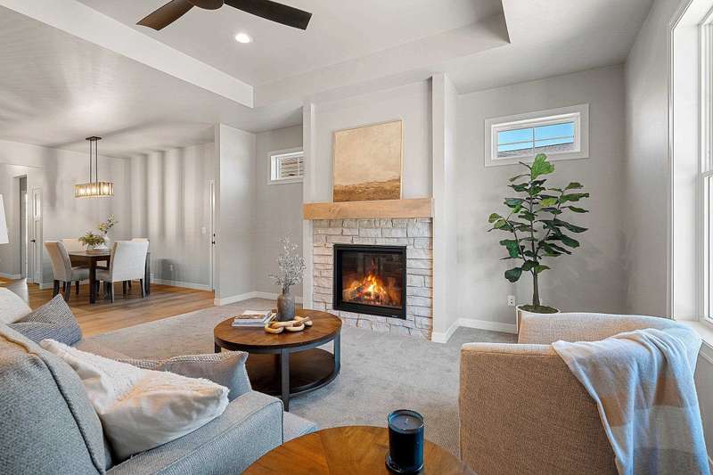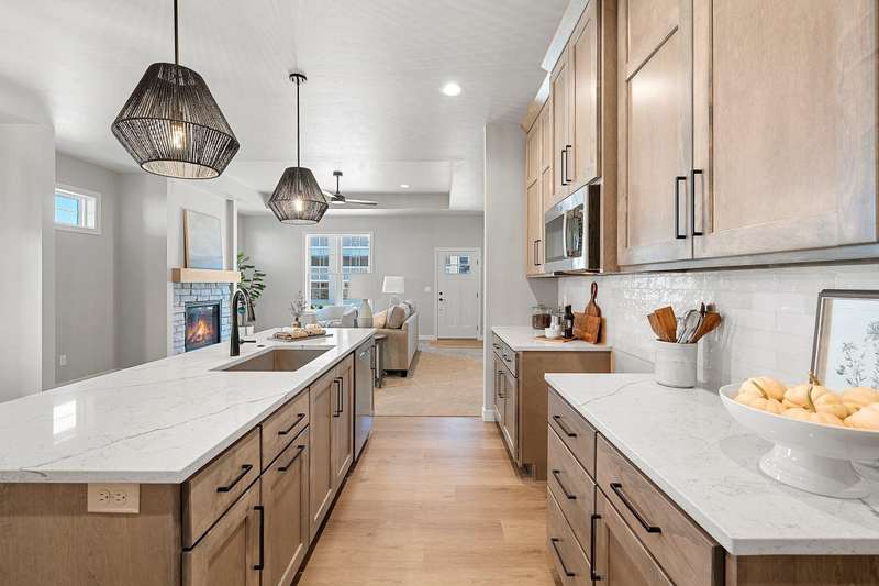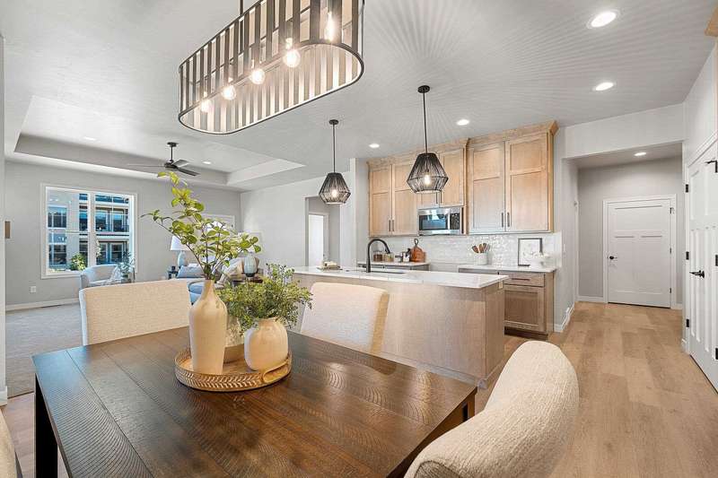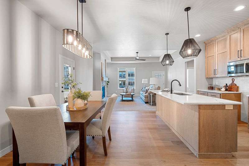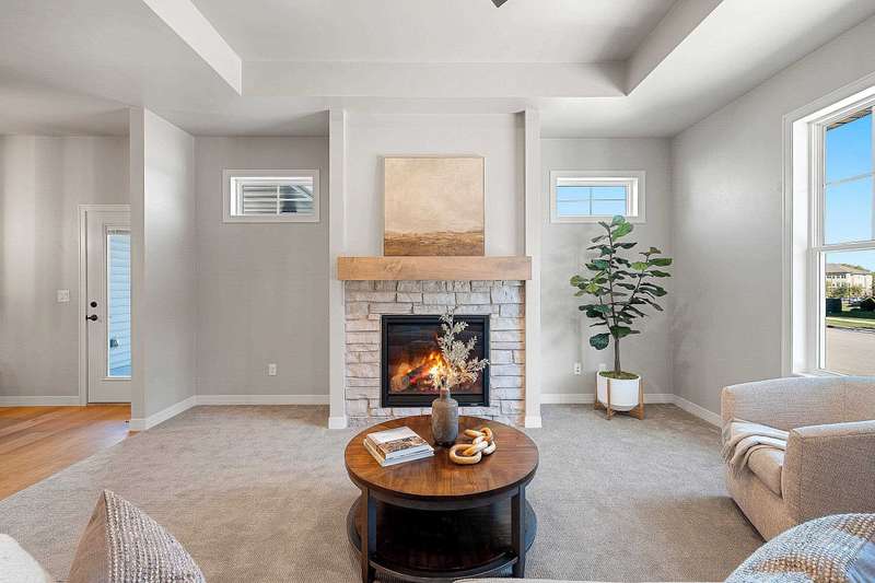 Enjoy the privacy & convenience of this impressive Townhome in desirable location near Howard Commons & walking trails! Zero-step entry w/ attached 2-car finished garage. Townhome features open concept design for entertaining along with beautiful corner fireplace in Great Room for those cozy evenings at home. Inviting kitchen offers large center island & abundant storage. Primary bedroom features an ensuite with private bath complete with dual sinks & roomy walk-in closet. Covered patio off the dining area adds desirable outdoor living space. You will appreciate the extra room to relax & entertain in the finished LL with large Rec Room, 3rd Bedroom & Full Bath. Lawn Maintenance & Snow Removal included. Zero lot line property. Move in & enjoy carefree living! 6/15/25 est. complete.