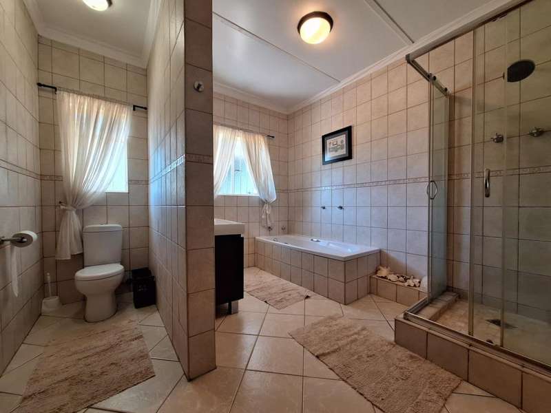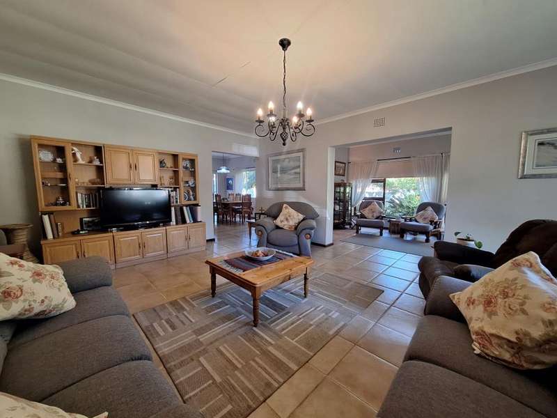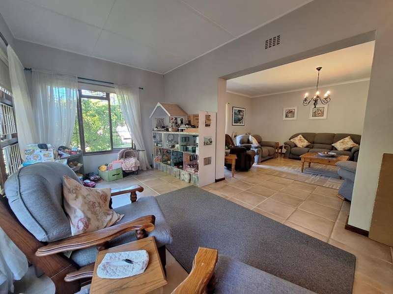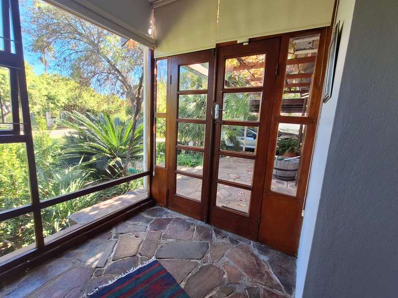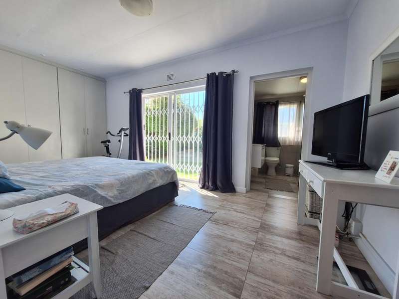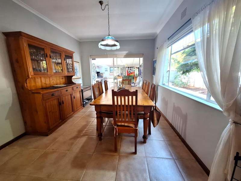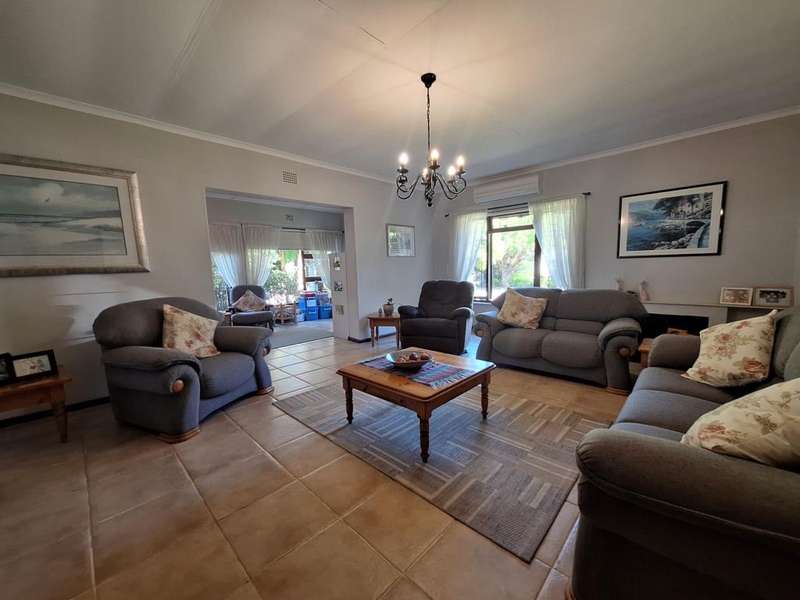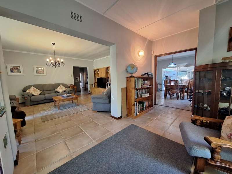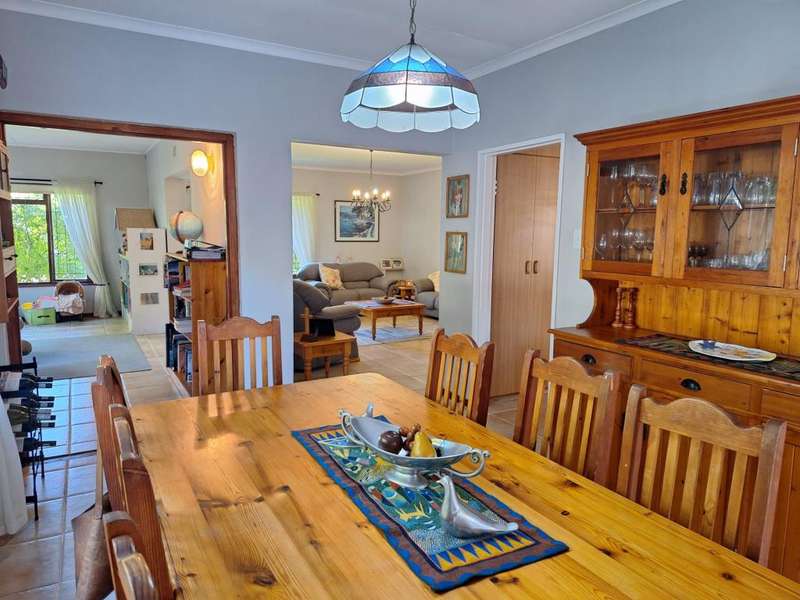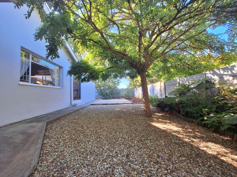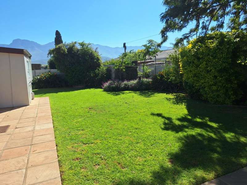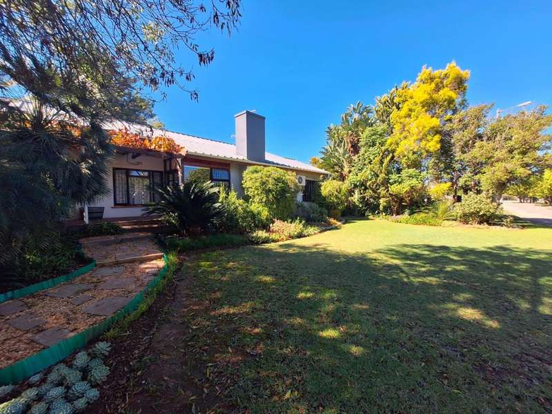 This property is the ideal family home. Spacious, light-filled and with a lush garden in a sought-after area in Robertson. Two generously sized, inviting living areas with ample windows create a warm space with a fireplace in the first lounge. The flow of the house has been expertly designed to create a feeling of openness and ensuring that the house is filled with light. The two living areas lead into the dining room which in turn leads to the braai room with built-in braai. The braai room is a lovely entertainment space, spacious and it leads directly to the back garden and to the side of the house where there is a lovely outside area under the trees. The kitchen has ample built-in cupboards and overlooks the back garden. A spacious scullery is conveniently located next to the kitchen and leads to the enclosed back garden. Positioned for privacy, the four bedrooms are situated on the opposite side of the house, with the main bedroom offering an ensuite bathroom and double doors opening to the garden. A full guest bathroom services the three guest bedrooms with the main bedroom being en-suite. The bedrooms are all fitted with built-in closets. The main bedroom has double doors which opens to the back garden. Added value to the property is an alarm system, the availability of leiwater, additional workspace in the house, additional parking in the back garden, fibre and two air conditioners.