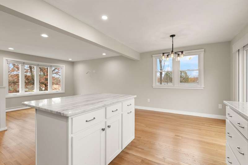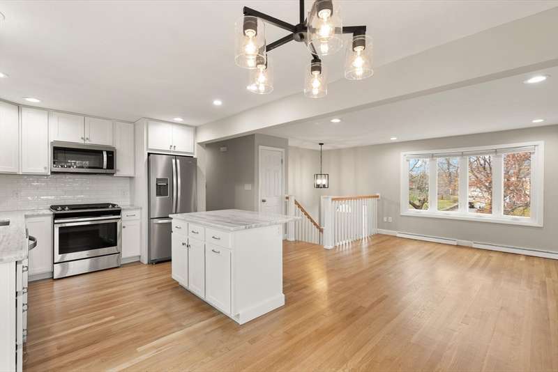 Charming N.Framingham home, located on the Sudbury line. Bright, spacious & move-in ready! This turn-key property features 3-BR s plus an office/guest room, 2 full bathrooms & an open floor plan ideal for modern living & entertaining. Sparkling kitchen boasts white shaker cabinets, quartzite countertops, stainless-steel appliances & a dining area that opens to the lovely living room & slider door to the recently painted deck which overlooks the level, private, fenced-in backyard with a stone patio, perfect for gatherings, relaxation & BBQ's. Re-finished gleaming hardwood flooring, freshly painted interior & brand-new hot water tank. Generous sized 1-car garage, central air & energy-efficient vinyl replacement windows. Nicely situated in a highly desirable neighborhood. Fantastic town location; near schools, library, hiking trails, retailers, restaurants & the Framingham Express MBTA. Quick close available. Celebrate the holidays in your new home. This is the perfect package!