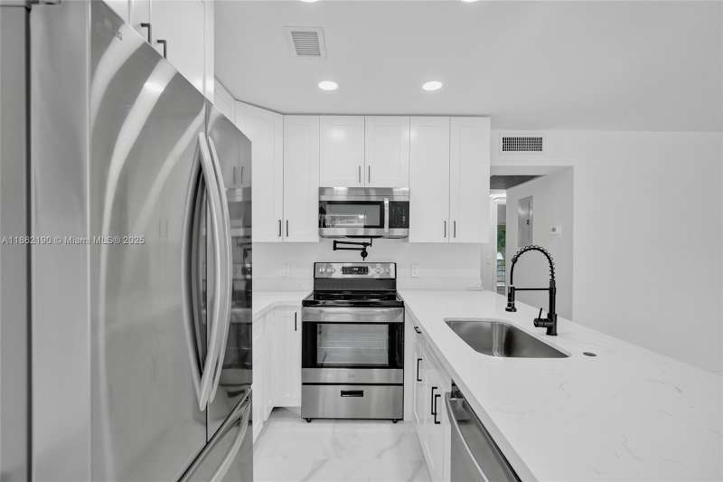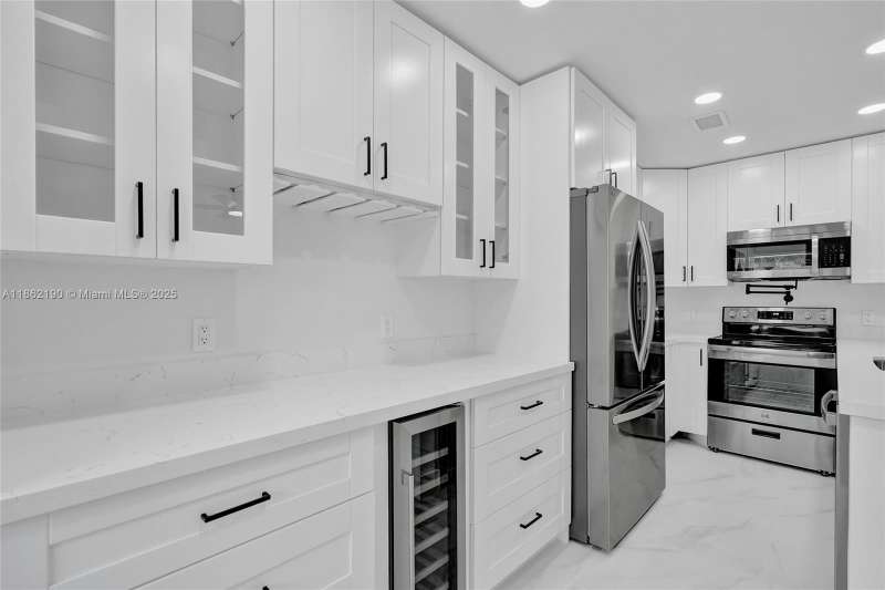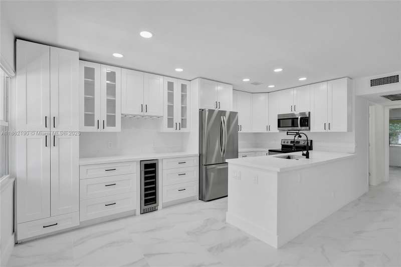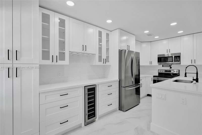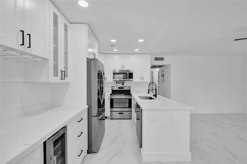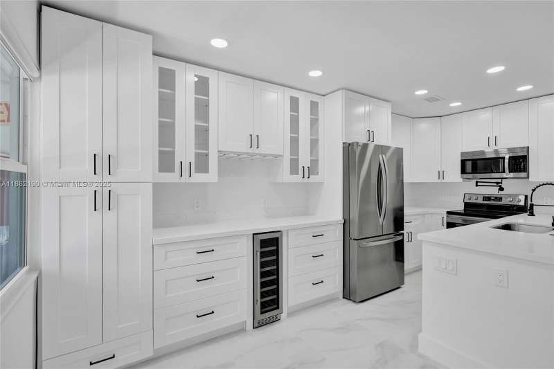 Step into this freshly renovated unit featuring impact windows and doors throughout.The open-concept kitchen is a chef’s dream with ample cabinet space, a pot filler for convenience, and a built-in wine cooler for wine enthusiasts. Enjoy porcelain tile flooring, modern zebra blinds, and beautifully upgraded bathrooms. The community offers courtesy buses to nearby shopping and beaches, plus an array of amenities including multiple pools, theater, exercise room, pickleball courts, and more.This stunning unit truly has it all, don’t miss the chance to make it yours!