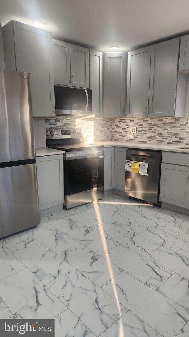 Improved Amenities! Dont Miss out on this TOTAL RENOVATION COMPLETED 2025 *ALL PERMITS APPROVED BY CITY OF PHILADELPHIA * (certificate of occupancy issued!) Includes Driveway and garage/shed. This Single Family - Detached Home with a rear yard, features a Brand New Roof with New Gutters! New Electrical and Plumbing systems installed. Enter the freshly painted home with refinished natural hardwoods in the Living Room, enter the Kitchen with new flooring and all stainless steel appliances with granite (quartz) counter tops with brand new 42 inch cabinets. The upper level features all new carpets for the bedrooms and newly tiled full bath with all new fixtures. The heating and cooling system is all new as well, with ductless mini-splits on each level allowing you to control the temperature on the lower level which is separate from the upper level temperature. The lower level has room for some storage and room to bring your own washer/dryer. The front portion of Driveway will be shared entry a few days a week Privacy Fence installed that separates from adjacent building. There is ample street parking also on this block. Enjoy the Rear yard with privacy. The garage can be used for extra storage. Call for more information. Applicants apply online after touring: general requirements: credit/background check, verifiable income ( 2.5-3 X the rent), tenant pays ALL Utilities and renters insurance, valid ID required, good rental history. Min. Score 620. 1st & Last month rent & security deposit before move-in. Rental will be managed by a property management company.