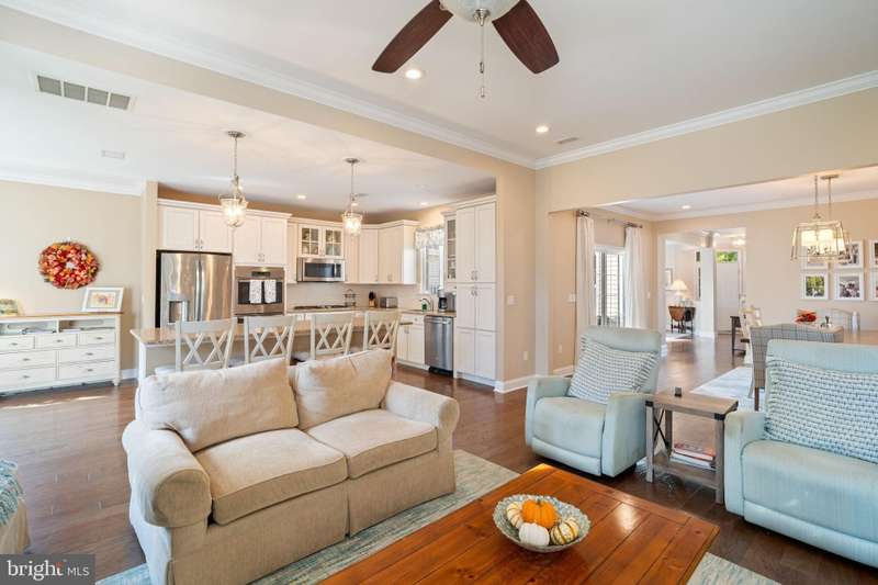 Step into luxury with this stunning 2015 Montauk model, nestled on a quiet cul-de-sac in Heritage Point, one of the area's most sought-after active adult communities. Offering the perfect blend of comfort and convenience, this home features a spacious open floor plan, with two clubhouses, indoor and outdoor pools, a fitness center, billiards, and tennis courts-all within walking distance. A charming paver walkway leads you to the welcoming front porch and entryway. Inside, enjoy a gourmet kitchen complete with a large Quartz center island, quartz countertops, and a 5-burner gas cook top, and a double wall electric oven. Crown molding accents throughout (except in the bathrooms) add an elegant touch. The home also boasts a two-car garage with additional storage above, a cozy gas fireplace in the great room, and hardwood floors throughout. A formal living room and spacious dining room offer plenty of room for entertaining. A large walk-in hobby room provides endless possibilities for creative use. . Enjoy the fresh air and serene surroundings on the open-air veranda or side patio. Additional features include a UV air purifier, ensuring clean and healthy air year-round. Located just minutes from Barnegat Bay Beach and Dock, shopping centers, and essential services, you're also within easy reach of Long Beach Island's pristine beaches and the excitement of Atlantic City. Nearby doctors and hospitals offer peace of mind, making this home as convenient as it is beautiful. Heritage Point isn't just a place to live; it's a lifestyle. With exceptional amenities and a vibrant community, every day feels like a vacation. Don't miss your chance to make this dream home yours!