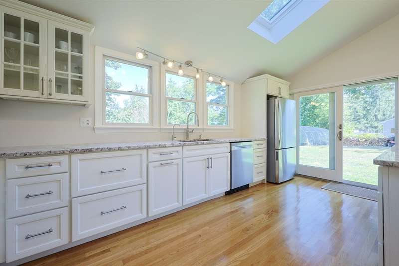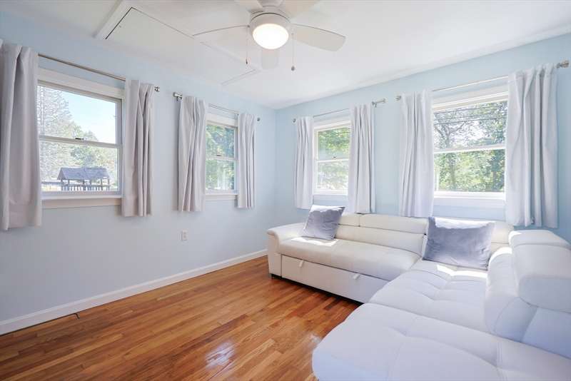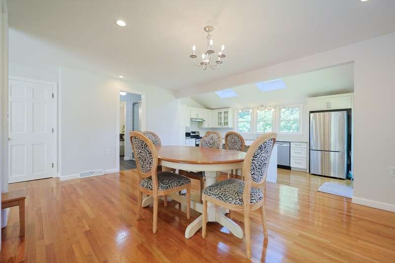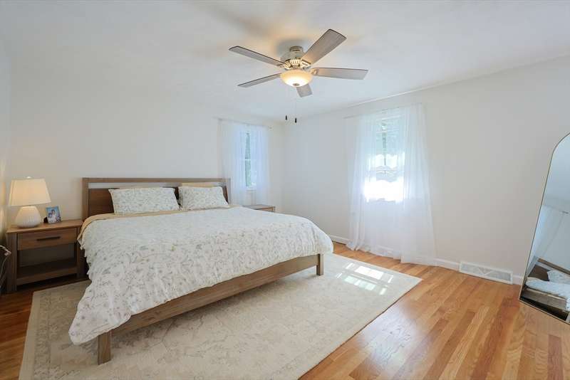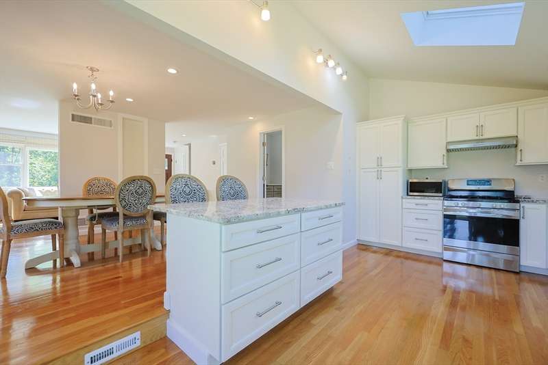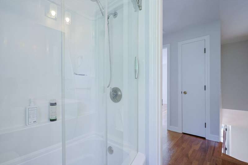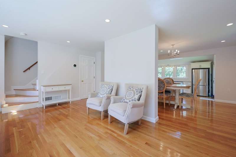 Beautifully updated Colonial ready for you to just move in and make it your new home to enjoy family living and entertaining your guest! Open floor plan on the first-floor features gleaming hardwood floors throughout! The spacious living room/dining area/ kitchen welcomes you with natural light. Gourmet kitchen features cabinets from wall to wall, breakfast bar to enjoy breakfast and lunch plus a dining area for dinner. Walk-out from the kitchen or 3 season sunroom to your private landscaped back yard! Luxurious first full bath includes a walk-in glass shower and two vanities with storage. Upstairs features hardwood floors in all three bedrooms, full bath with a glass shower and tub, pedestal sink and tiled floor. Primary bedroom is light and bright with two closets, ceiling fan with light, and a large windows. Central air throughout! Location! Convenient to all amenities! Don't let this one pass you by, schedule your showing today! Showings begin 9/10/25 at the open house 4-6.