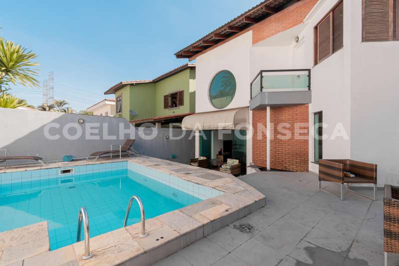 Casa no condomínio ALPHAVILLE 9, com 305m² área construída, 4 dormitório(s), 2 suíte(s), 4 vaga(s), 5 banheiro(s), piscina, dep. de empregados, pé direito duplo.