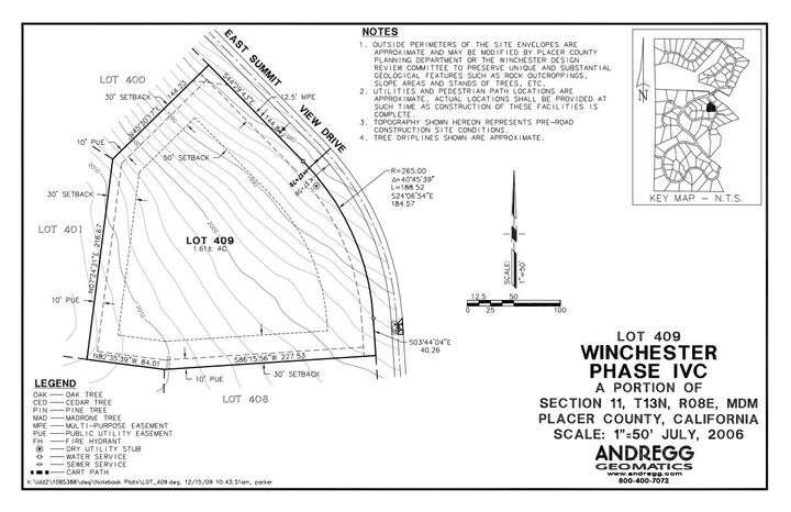 Forested Retreat with Mountain Vistas - This 1.61-acre property combines the charm of a forested escape with the sophistication of Winchester Golf & Country Club. A short uphill driveway leads to a flat, usable building area surrounded by mature trees, offering both privacy and a grand sense of arrival. From its elevated position, the homesite enjoys filtered woodland views and distant glimpses of the Sierra Foothills, creating a serene natural backdrop. With its generous size and layout, Lot 409 not only provides an ideal foundation for a custom luxury estate but also the potential for an ADU or guest house perfect for multi-generational living or hosting with ease. Designed for those who value tranquility, natural beauty, and community prestige, this parcel offers a rare opportunity to create a residence that embraces both refined living and the mountain lifestyle.