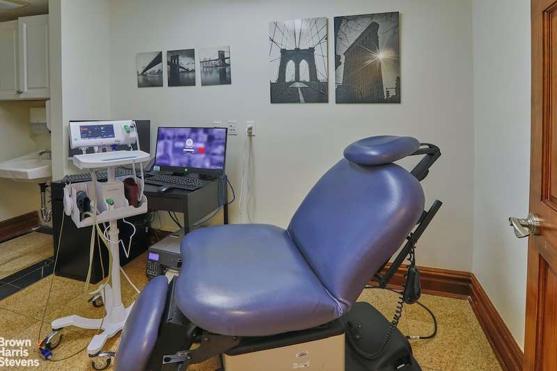 This large, 1,200 sq. ft. (can be combined for a total of 2,400 sq ft.) professional, dental, medical space, was purpose-built to current standards and occupies the ground level of a beautiful Park Slope brownstone. Bring your practice to your patients and customers in this beautifully designed space among the rows of historic homes in one of Brooklyn's most beautiful neighborhoods. Access to the building, offices and treatment rooms is DDA compliant with elevator access on each floor. The floorplan (of the entire 2400 sq ft. duplex) tells the story of the variety of uses and configurations available and the space can be redesigned as required. Both floors have high ceilings and the treatment rooms and offices each have sinks or hookups and can be customized as required by the tenant. Each floor of the duplex has its own separate entrance door. The designers of this wonderful workspace carefully maintained the charm of the building's woodwork and decorative fireplaces to create beautifully fitted waiting areas, offices and workspaces. The lush green garden terrace at the rear, accessible from each floor independently, is a quiet retreat, serene work space, break area and more. Available alone as a 1200 sq ft. single floor or combined with 1200 sq ft. lower level - see floorplan.