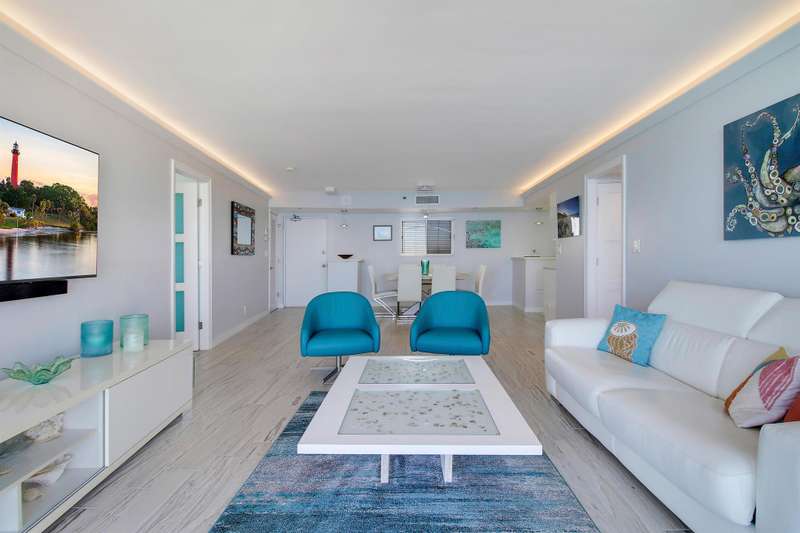 This beautiful, direct oceanfront condo in Ocean Trail offers stunning panoramic ocean views from every room! The southern most building, it provides private access to the beach and to the Jupiter Beach Resort, offering an unparalleled coastal lifestyle. It features world-class amenities, including nine tennis & pickleball courts, a pool, spa, and a fitness center. The condo itself boasts a modern design with stainless steel appliances, quartz countertops, tiled flooring, and an in-unit w/d. With direct east exposure, you can enjoy breathtaking sunrises right from your living room! The gated community offers underground parking & is close to top restaurants, shopping, & entertainment, this impeccably maintained condo combines luxury, location, and comfort. The perfect seasonal getaway!