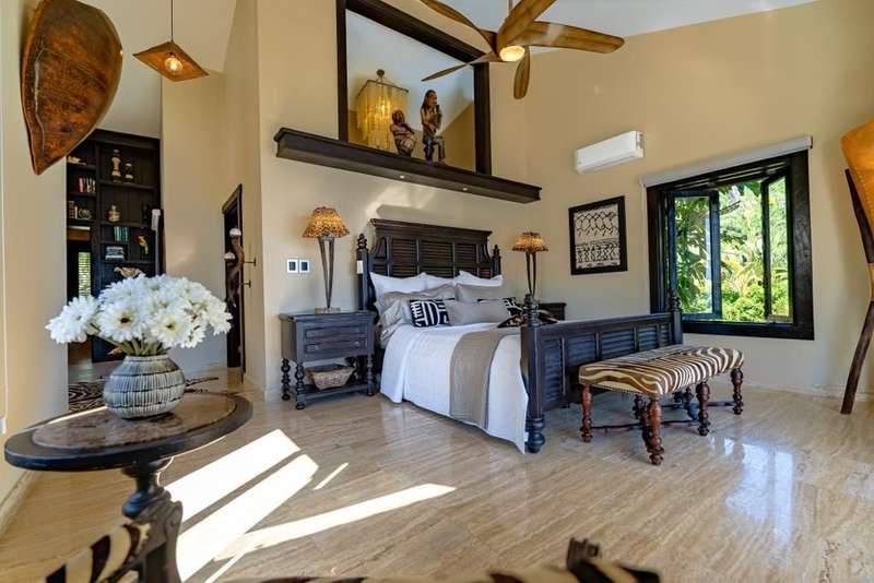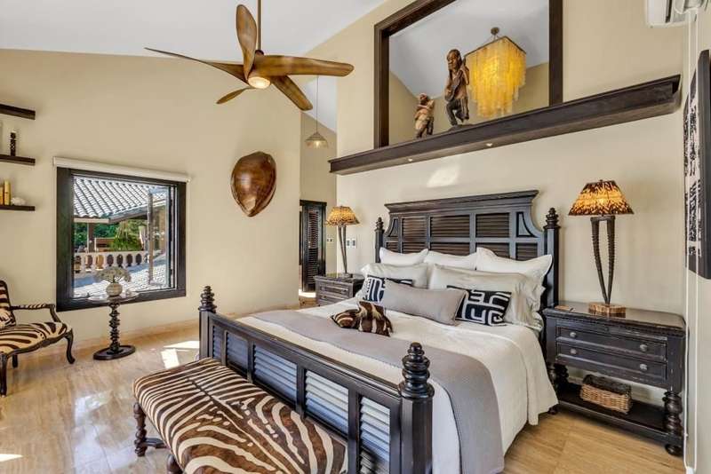 The double king-size adjustable Hastens bed in the master bedroom ($35.000) plus bed frame from Tommy Bahama Kingstown collection (additional $4.000). The Lexington Tommy Bahama Kingstown collection furniture is in the entire house including the outside dining chairs. The organic bedding from Boll & Branch is found in all bedrooms.