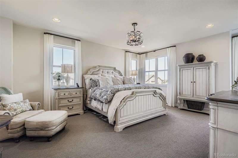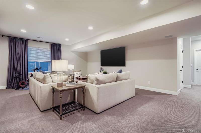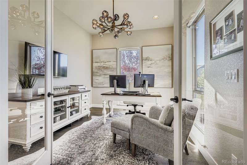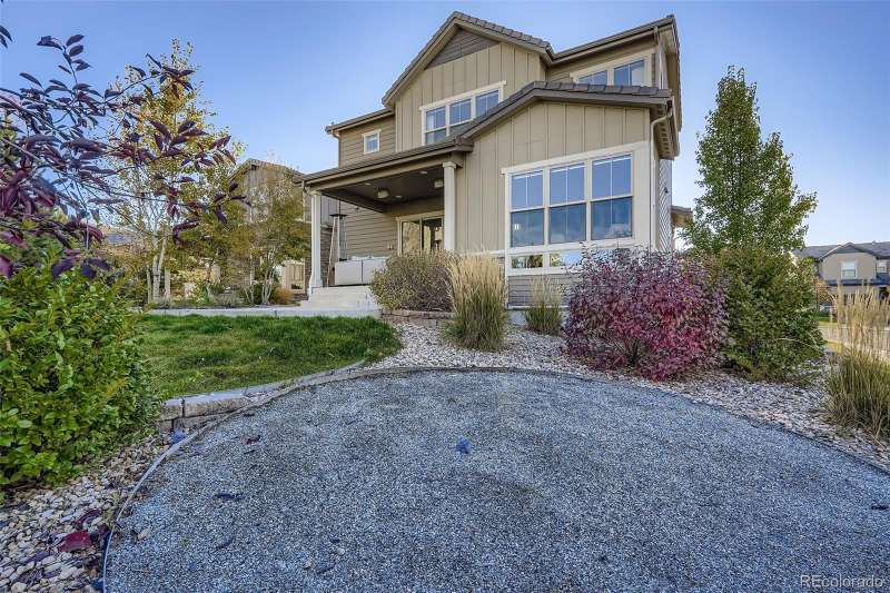 Discover luxurious living in this meticulously maintained 4-bedroom, 4-bathroom Highlands Ranch home in the gated Backcountry neighborhood. This 3,770 sq. ft. residence boasts a gourmet kitchen with quartzite counters, a gas stove-top, and walk-in pantry. The eat-in kitchen is surrounded by over-sized windows that flood the space with natural light. The open floor plan has tall ceilings, and seamless indoor-outdoor living through large sliding doors leading to a covered outdoor space, where you can relax and enjoy the low maintenance landscaping. A main level office, with glass french doors and windows galore, is the perfect place to spend your work day. Retreat upstairs to the expansive primary suite with a spa-like 5-piece ensuite and large walk-in closet. Enjoy mountain views from two secondary bedrooms, and the conveniently located upstairs laundry. An extra-wide, grand staircase leads down to the finished basement which offers a second large gathering area, wet bar, guestroom with private bath, and ample storage. The whole house has automatic Somfy shades, and a 4 zone sound system wired for Sonos. The insulated garage with epoxy floors features a west-facing driveway that quickly melts the snow away. Exclusive access to the hub of the neighborhood - the Sundial House - provides a restaurant, lounge, pool, and health/wellness facilities. Backcountry residents also get access to private trails for all-season activities like hiking, biking and snowshoeing, and the opportunity to see all the wildlife that Colorado has to offer. Experience a luxury home with resort-like amenities at every turn. Schedule your showing today!