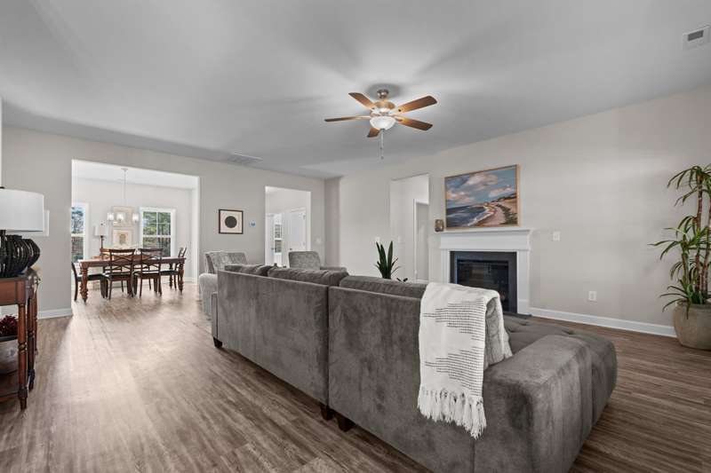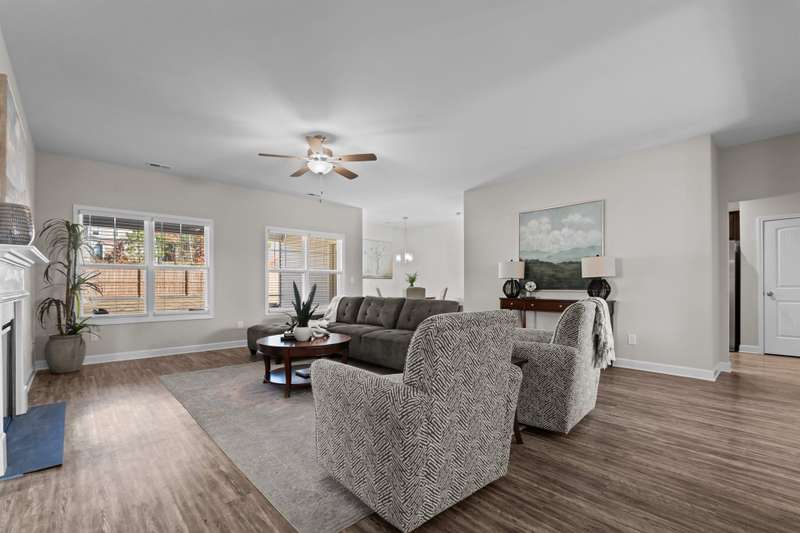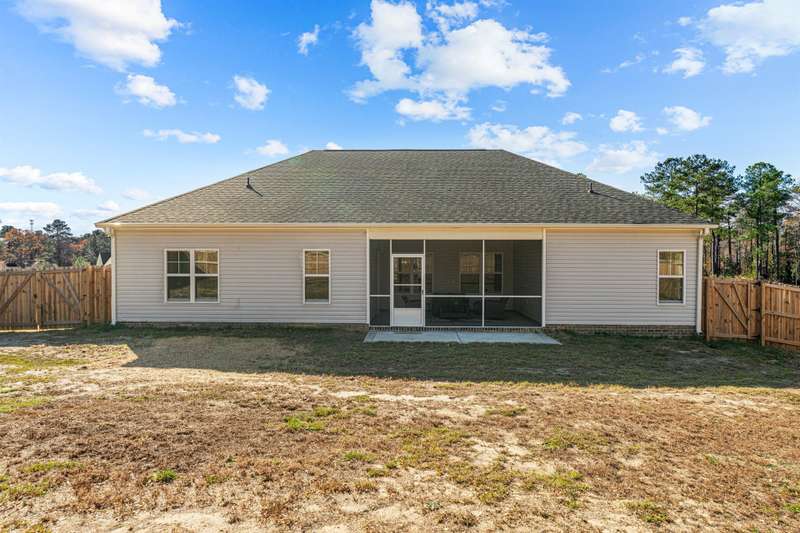 ONE STORY living priced below recent appraisal !This stunning better-than-new ranch is ready for you to move right in! Step onto the charming front porch and feel instantly at home. Inside, a versatile office/flex space at the front of the house is perfect for remote work or a creative retreat. The open-concept family room invites relaxation, featuring an electric fireplace and ceiling fan. The modern kitchen is a chef's dream with granite countertops, a sleek tile backsplash, stainless steel appliances, and a separate pantry. The private primary suite at the rear of the home includes a cozy sitting area, a luxurious bath, and a must-see walk-in closet. Generously sized secondary bedrooms are thoughtfully positioned on the opposite side of the house, offering privacy and comfort. The laundry room comes equipped with ample upper cabinetry for convenient storage.Step outside to enjoy the screened patio, fenced backyard, and the practicality of a two-car garage. Plus, with NO carpet throughout the home, upkeep is a breeze. This home truly has it all?don't miss it!